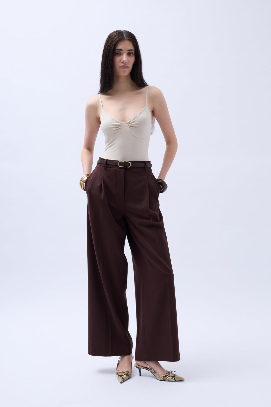 Aksesuar Detay Maxi Kahverengi Elbise