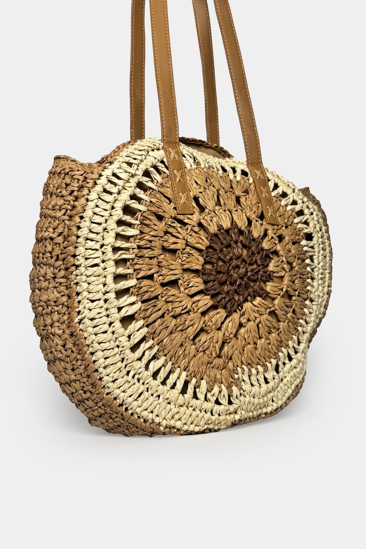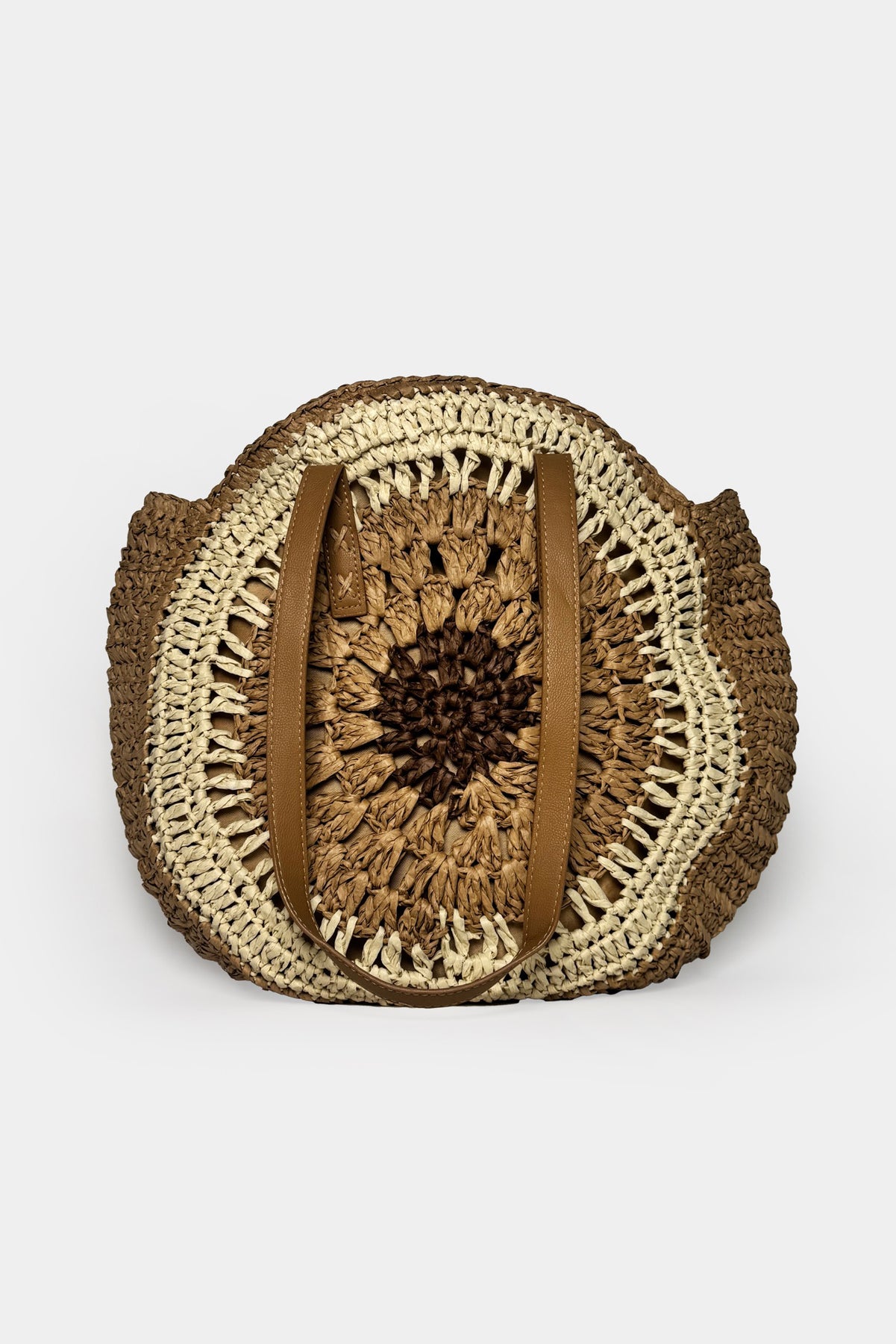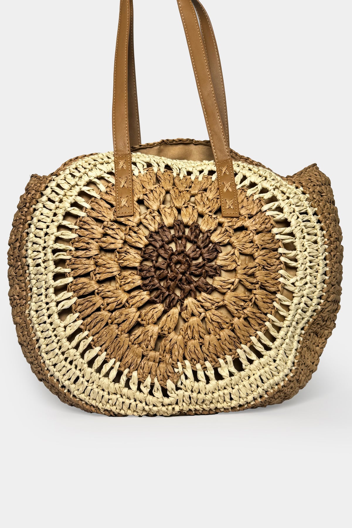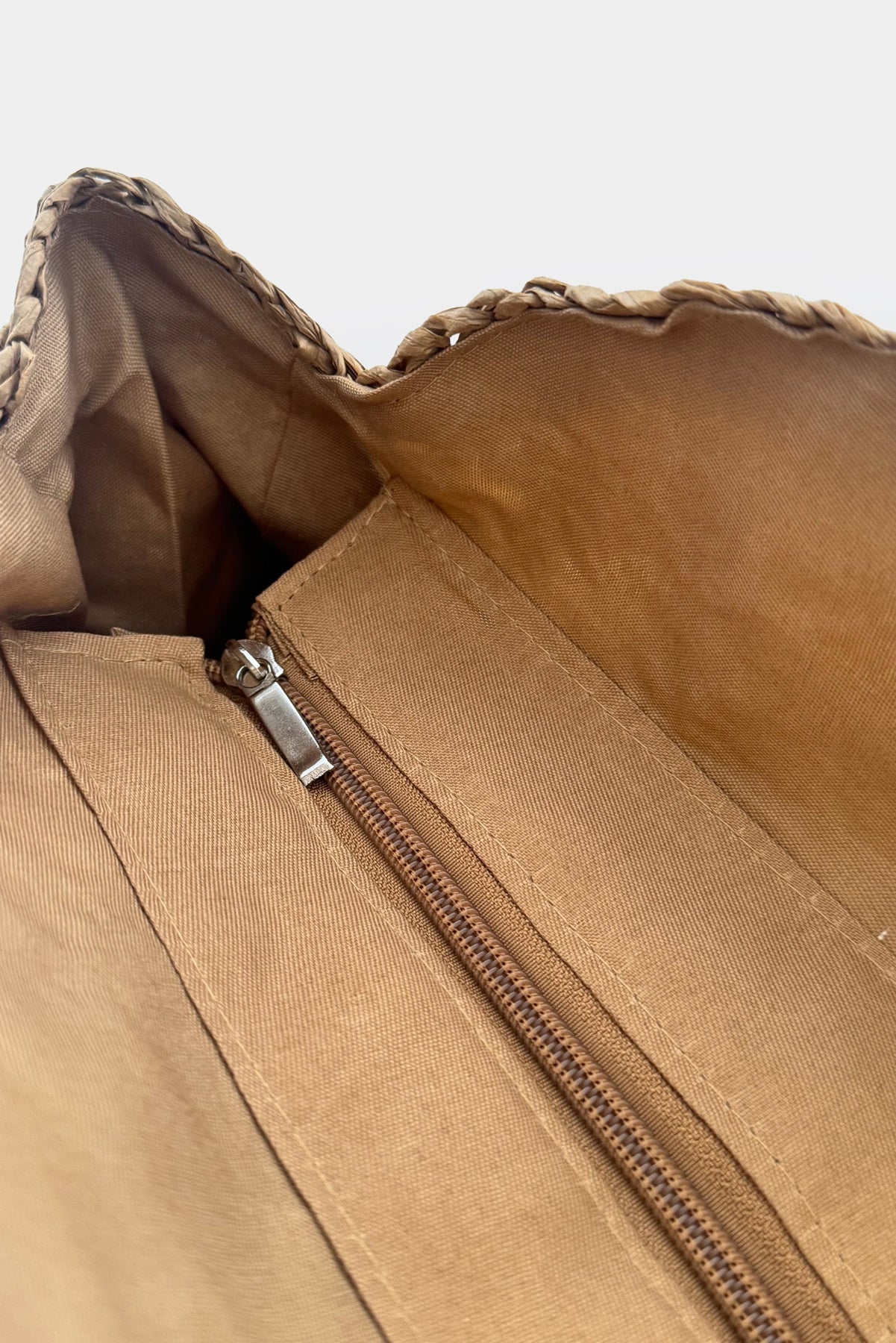 Nakış Görünümlü, Çift Askılı, Fermuarlı Hasır Çanta