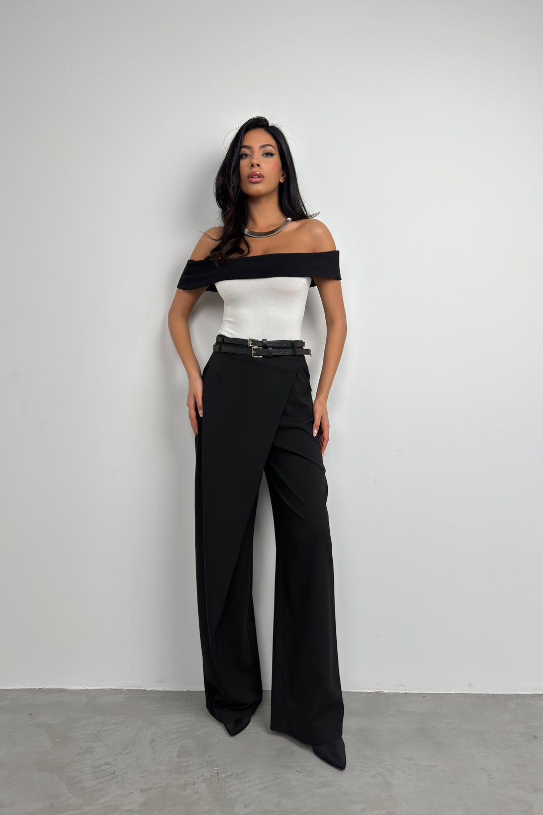 Asimetrik Detay Tek Omuz Siyah Bluz