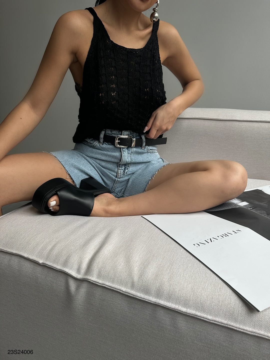 Askılı Fırfır Detay Asimetrik Tül Siyah Bluz