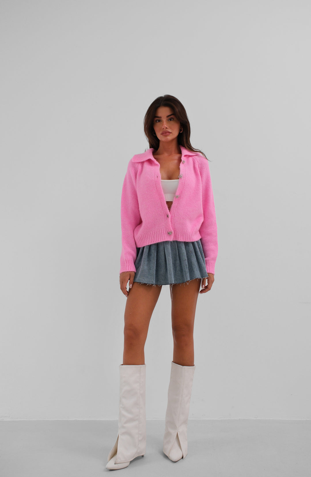 Tek Cepli Çıtçıtlı Pembe Triko Hırka