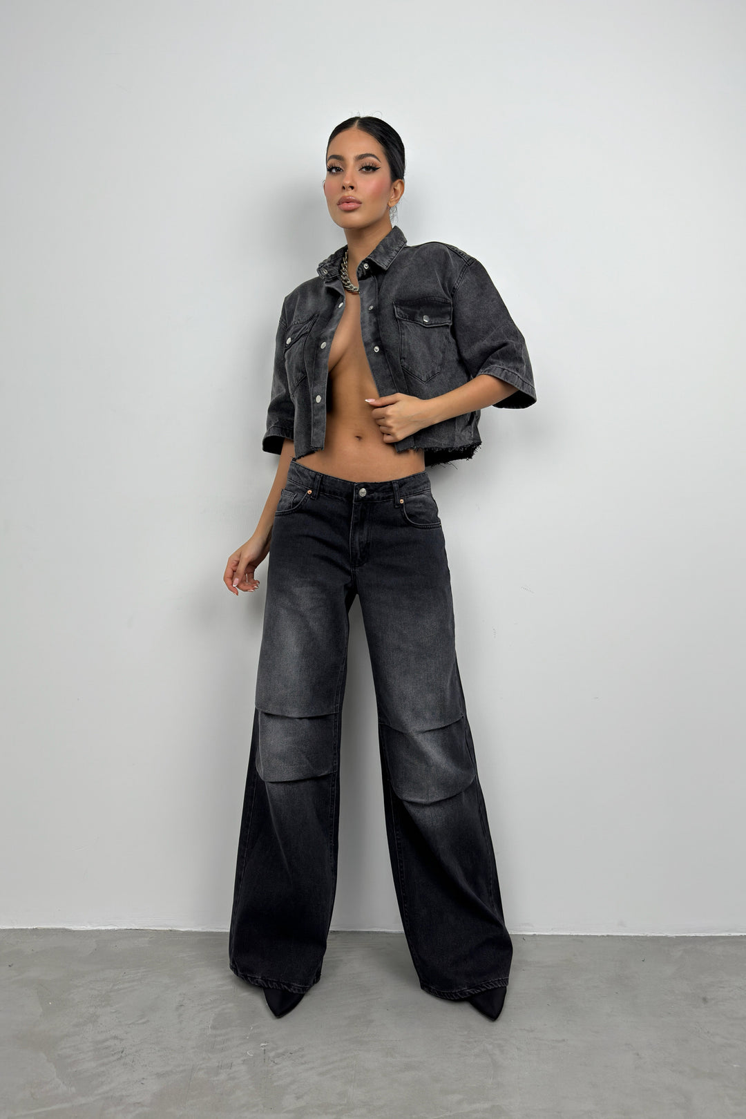 Yarım Kol Crop Açık Mavi Kot Gömlek