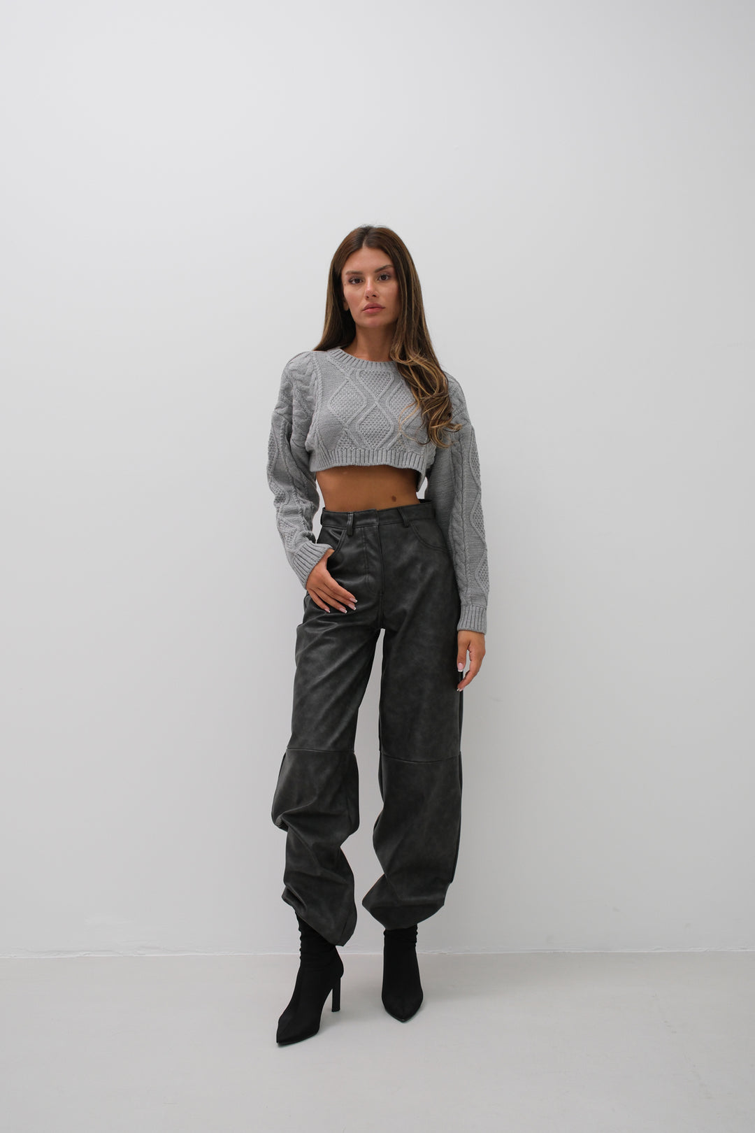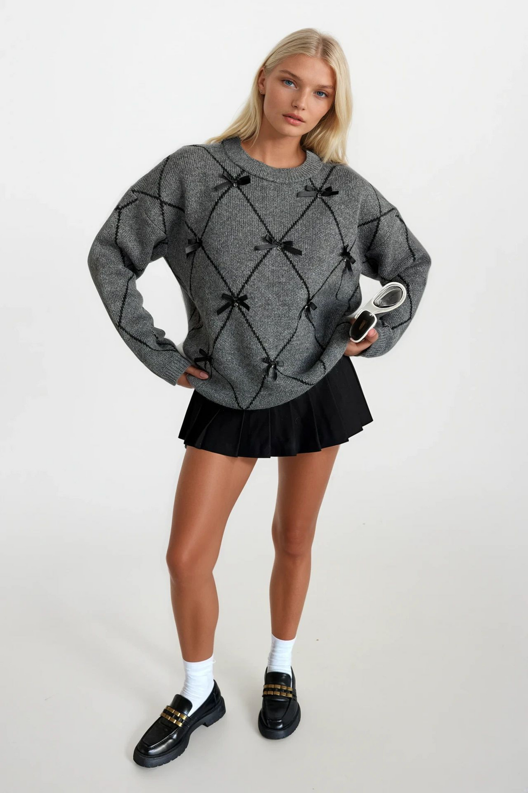 Baklava Desen Taş İşlemeli Fiyonklu Antrasit Kazak