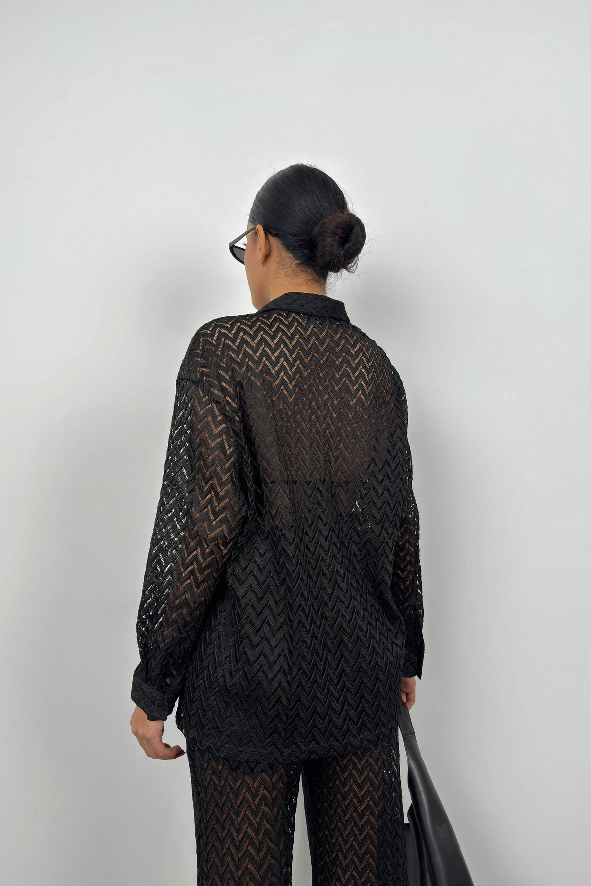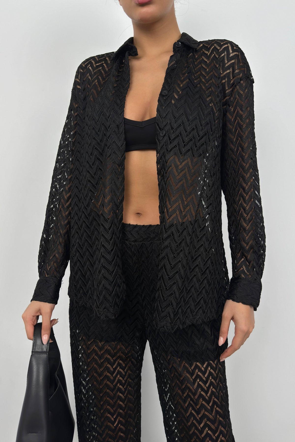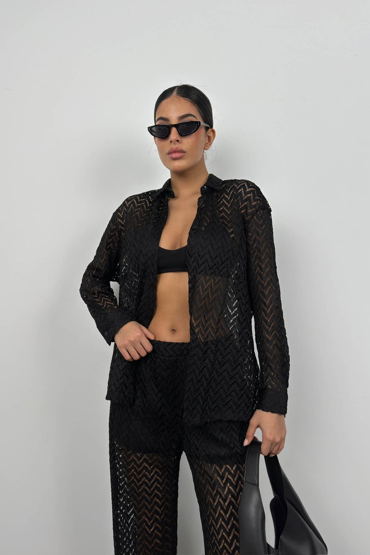 Transparan, Manşet Detaylı Gömlek Beli Lastikli, AstarlI, Transparan Pantolon