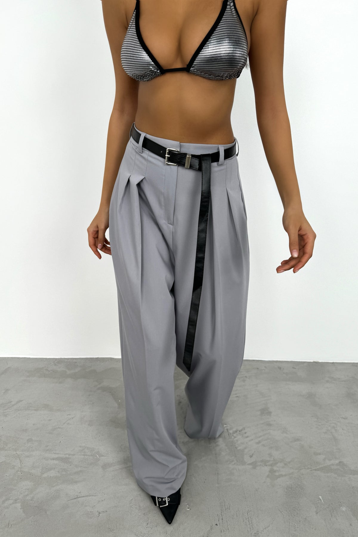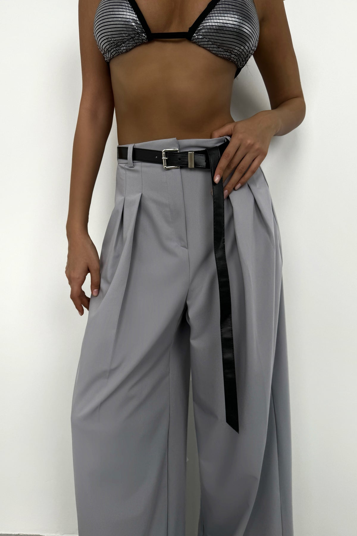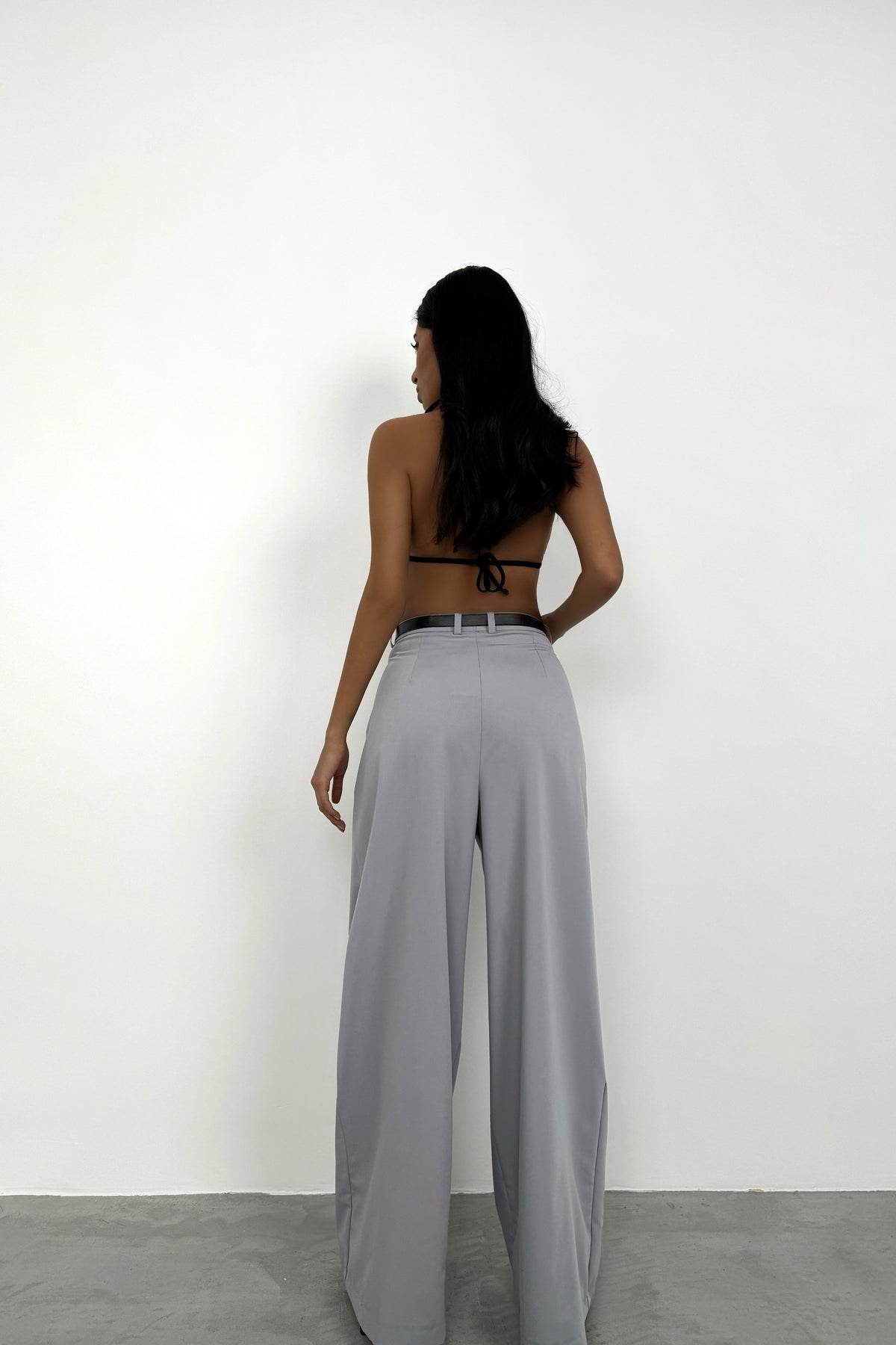 Pile Detay, Yüksek Bel, Bol Paça, Kemerli, Pantolon