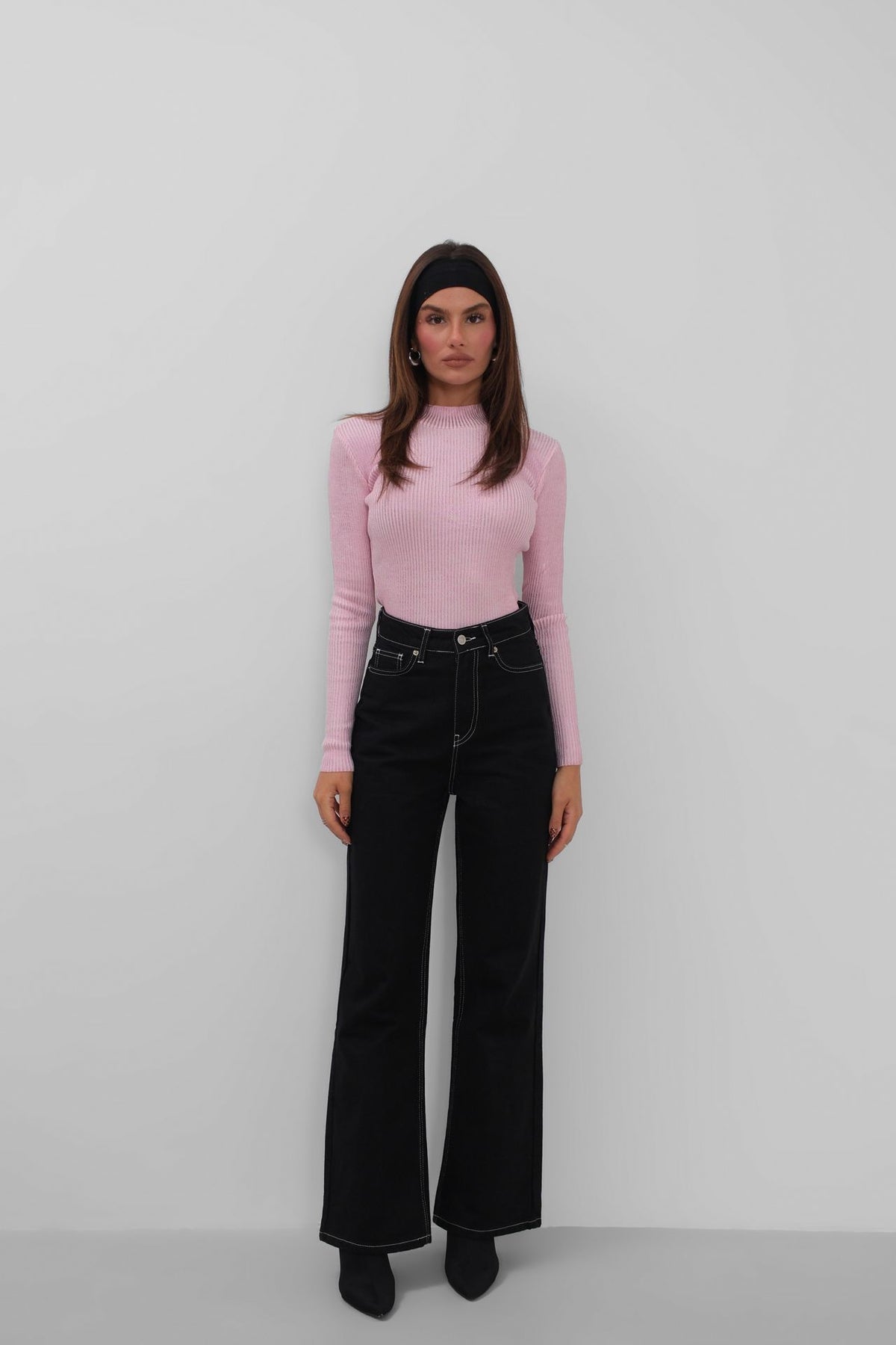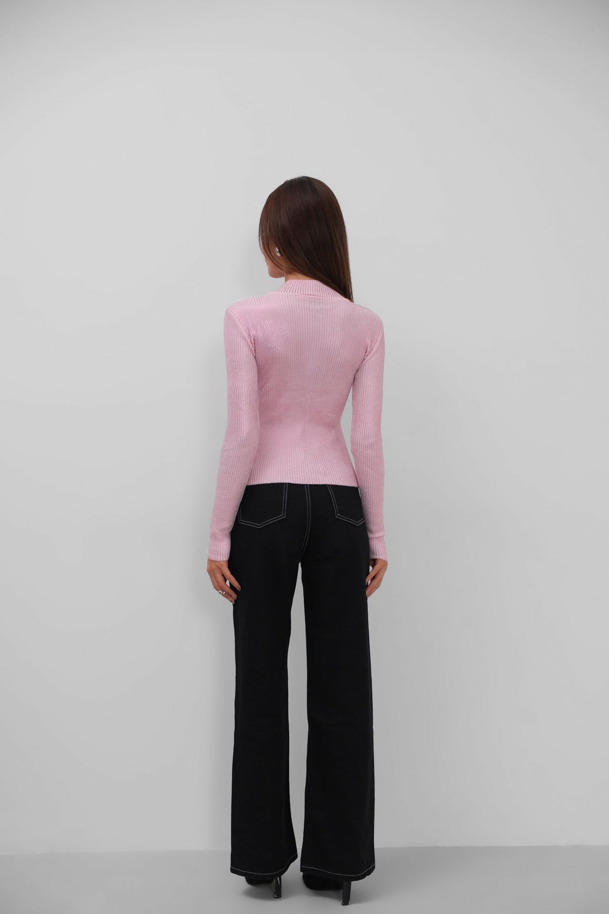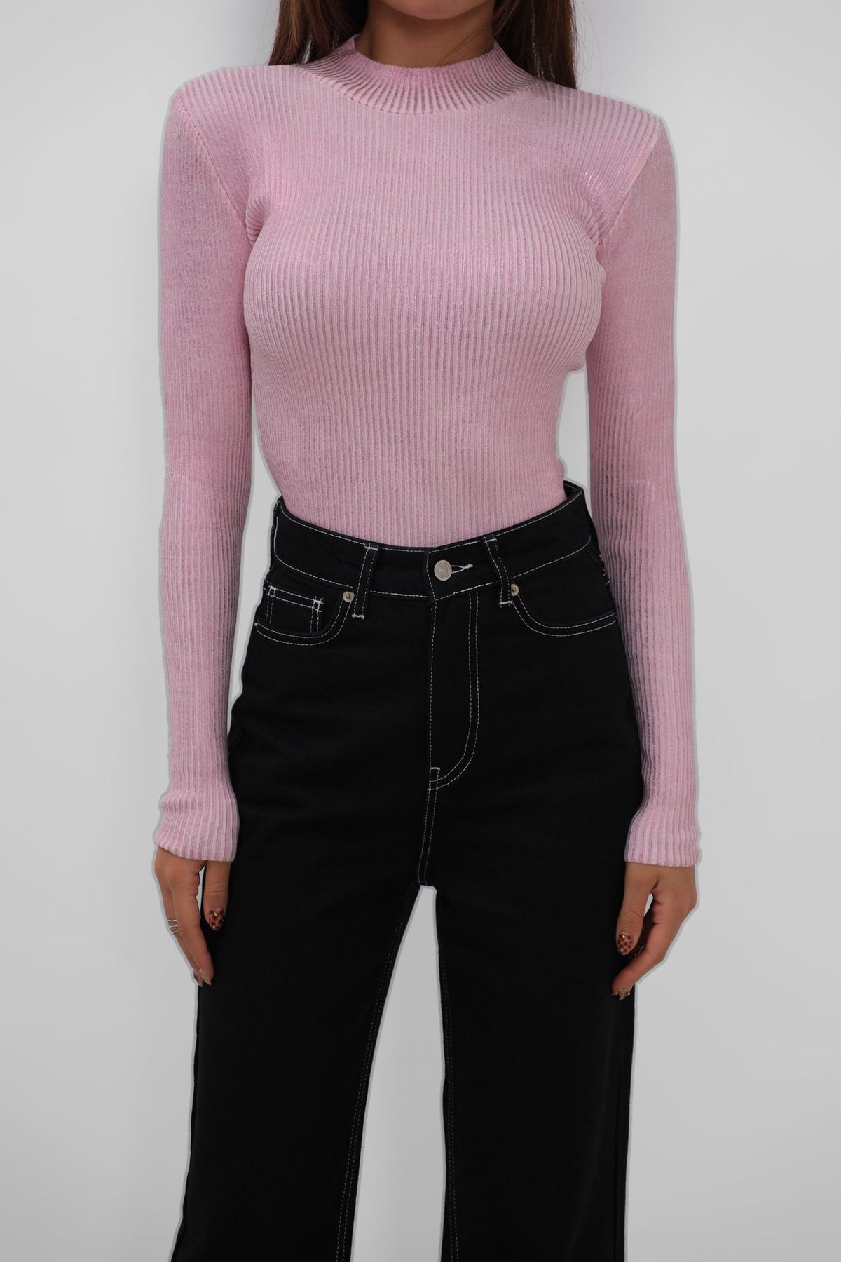Balıkçı Yaka Metalik Pembe Triko Bluz