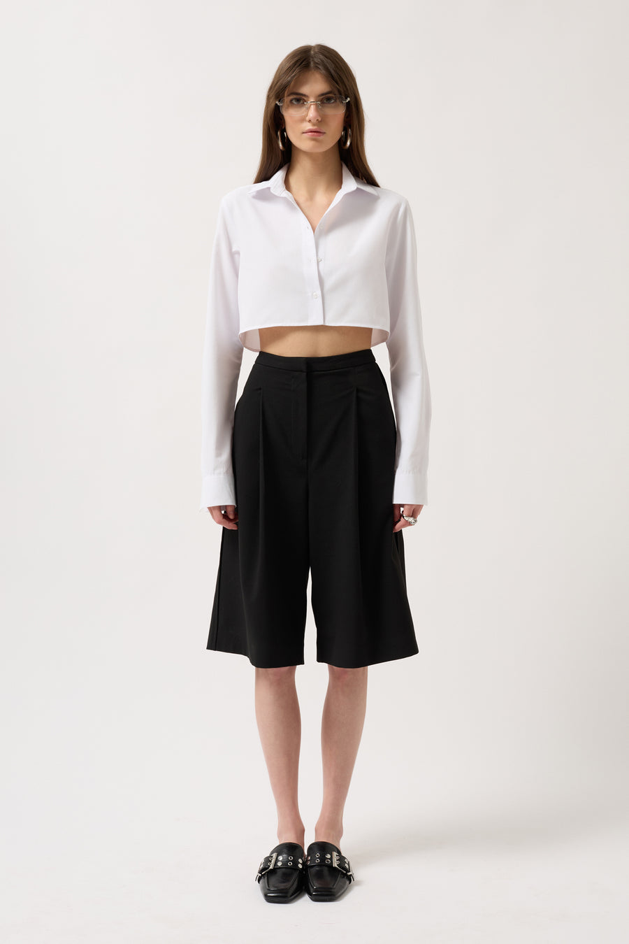 Volan Kol Gold Düğmeli Siyah Bisiklet Yaka Bluz