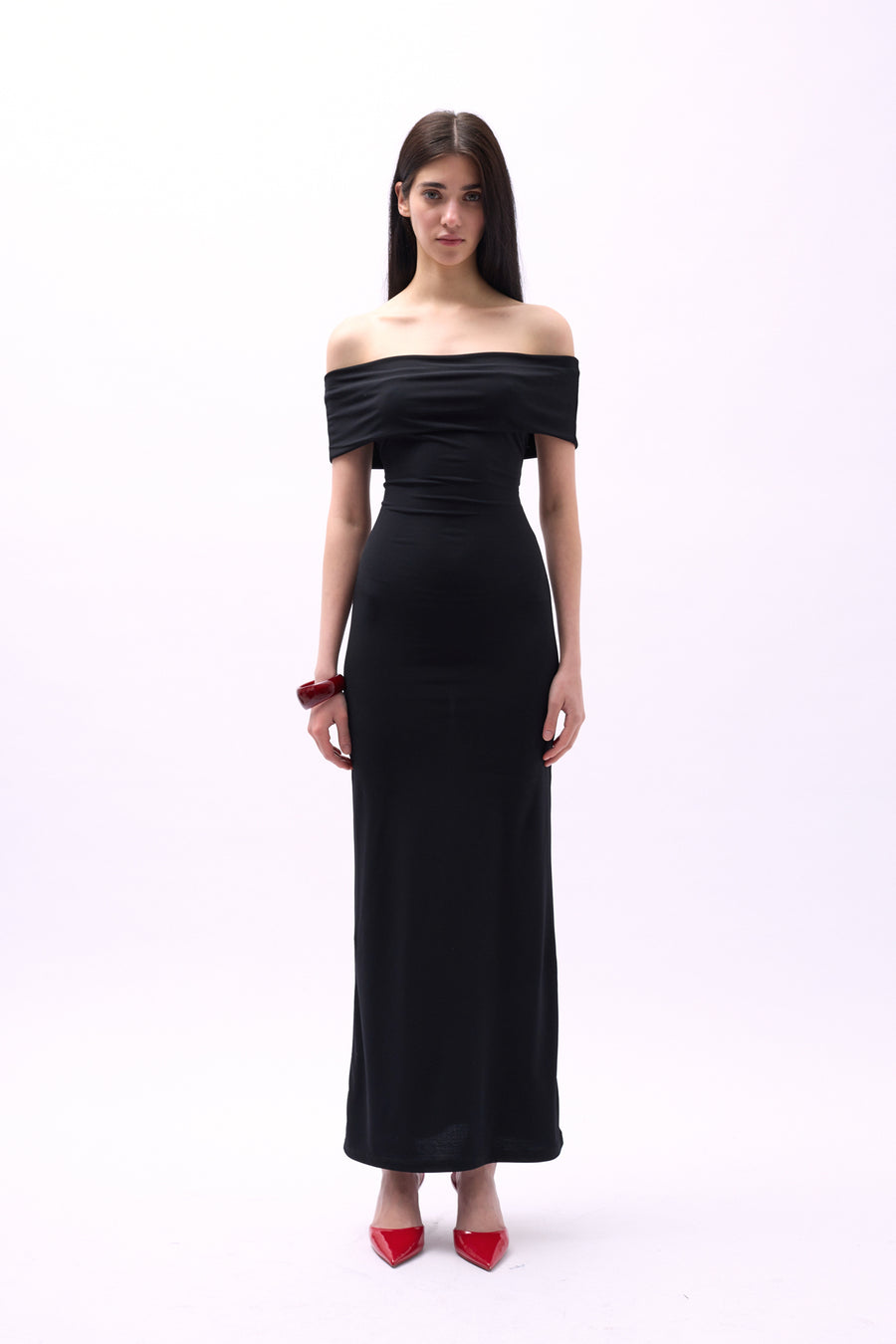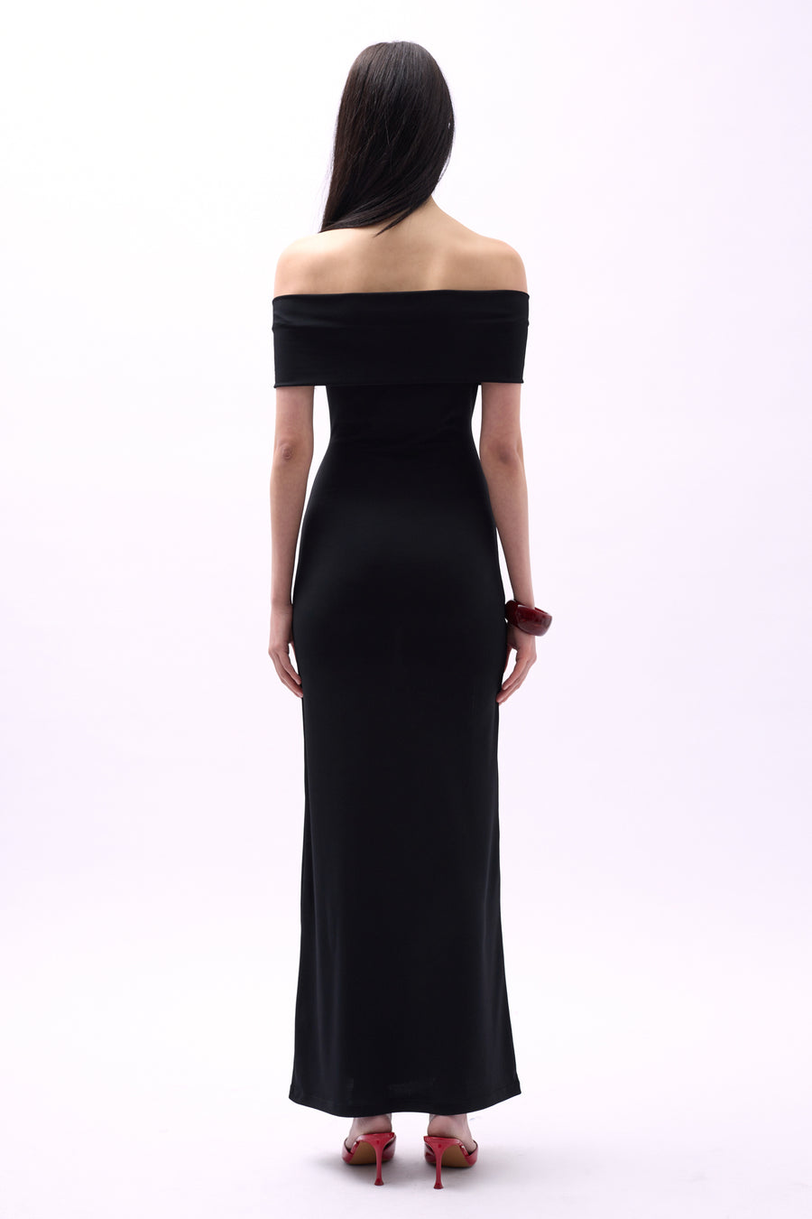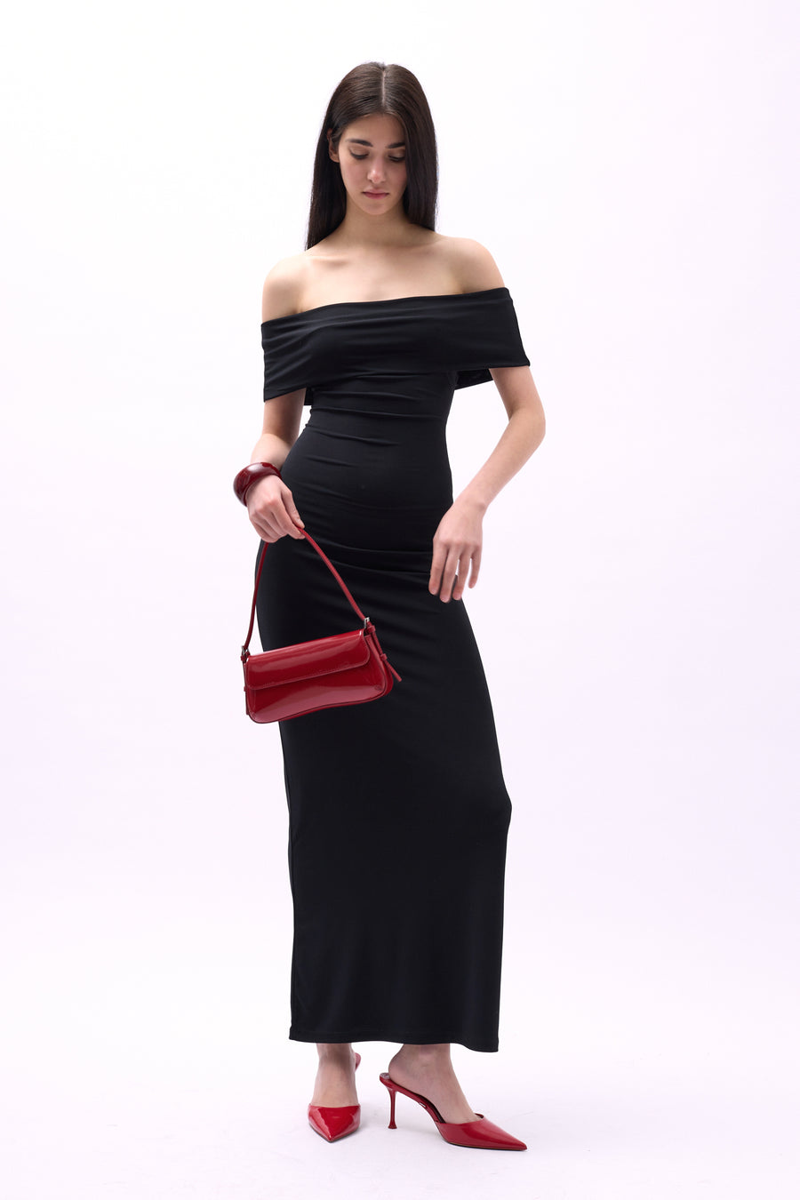 Aksesuar Detay Bel Dekolteli Maxi Bordo Elbise