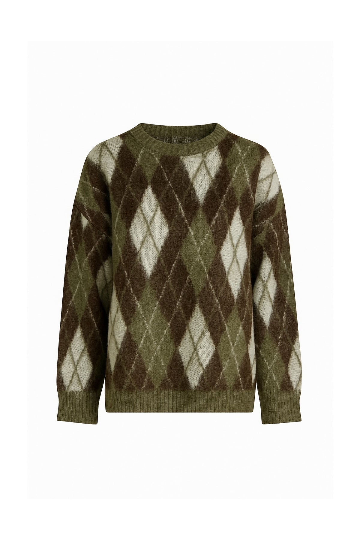 Baklava Desen Dokulu Bisiklet Yaka Haki Triko Kazak