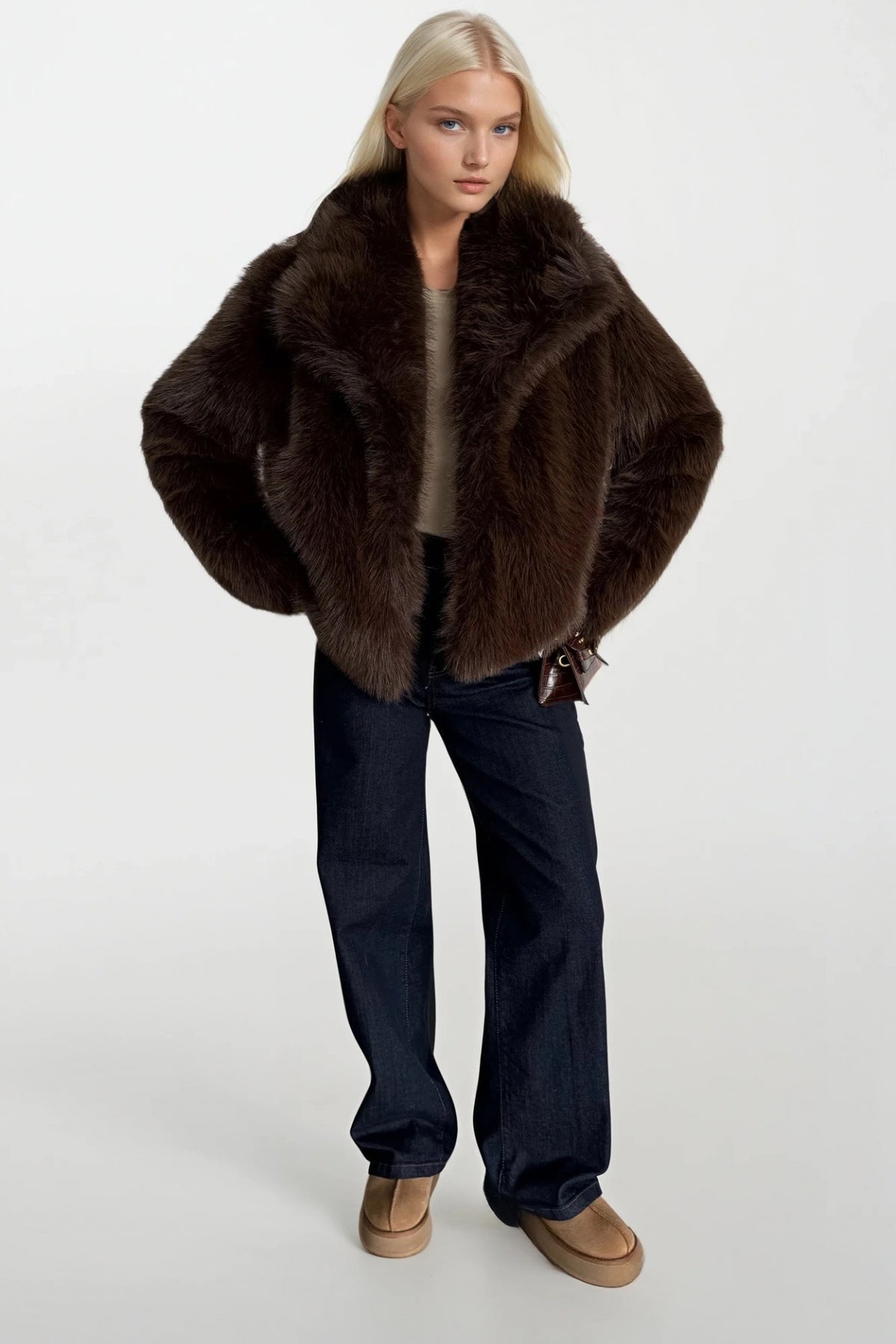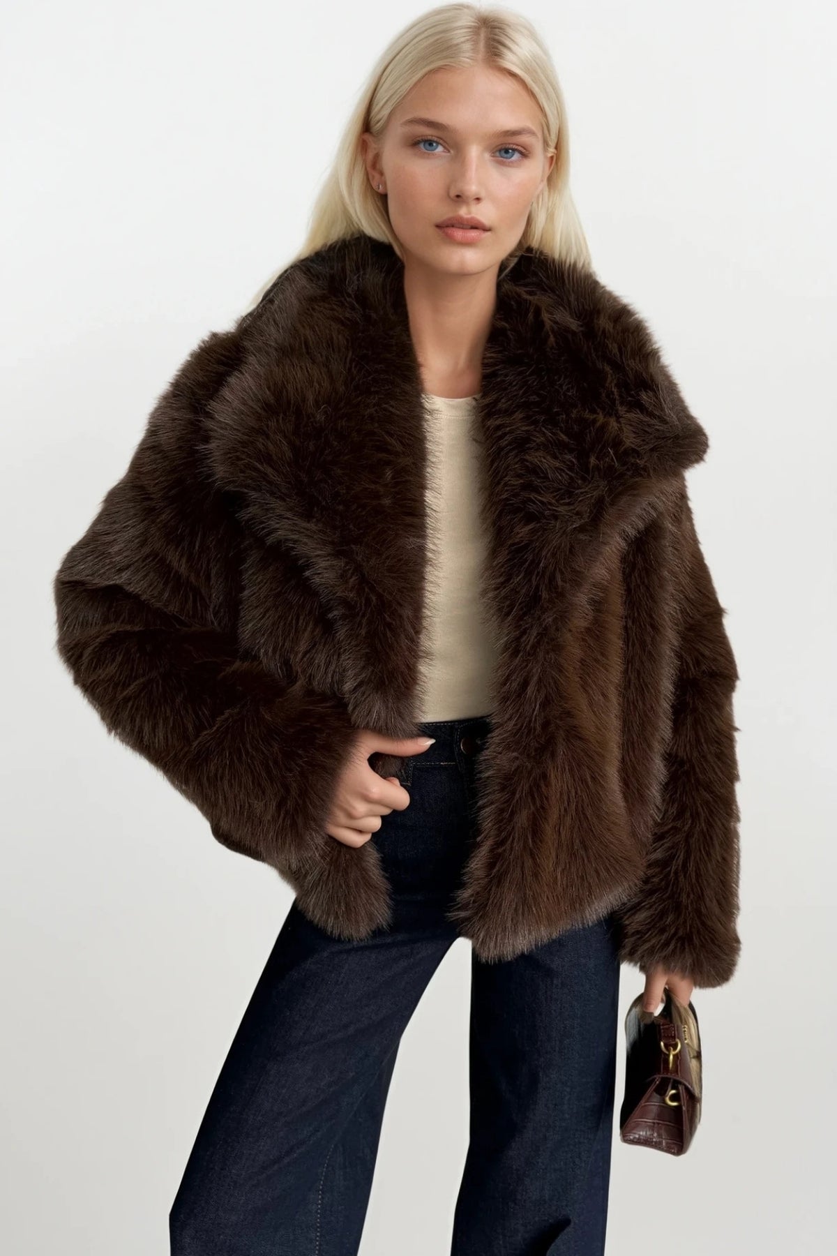 Şal Yaka Peluş Kahverengi Kürk