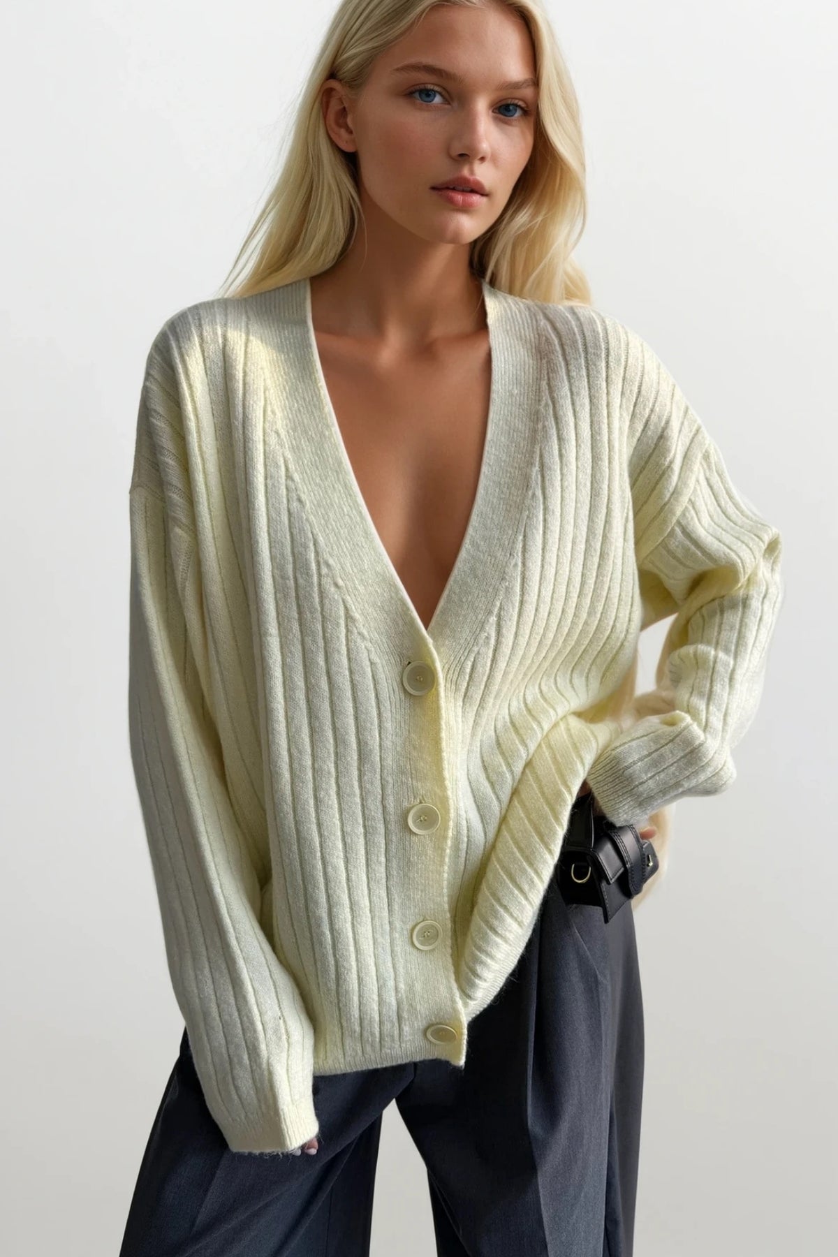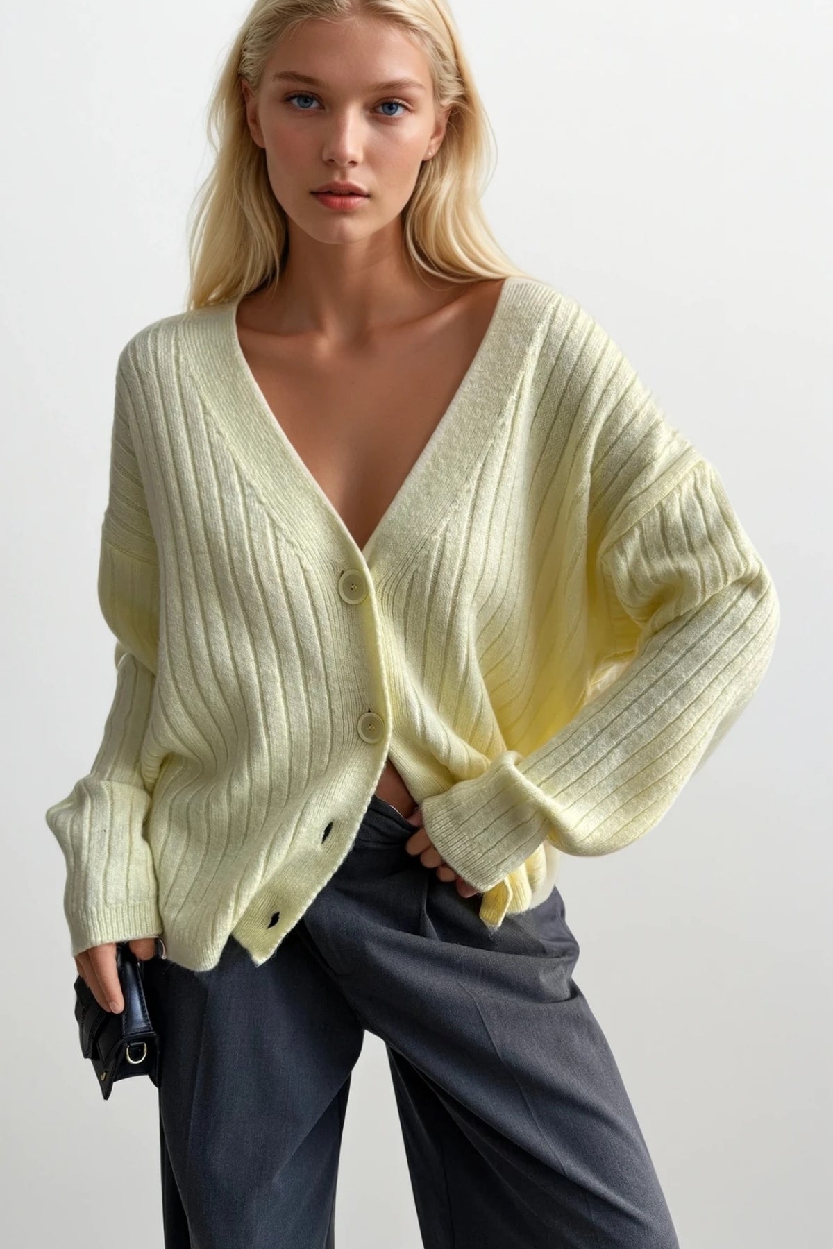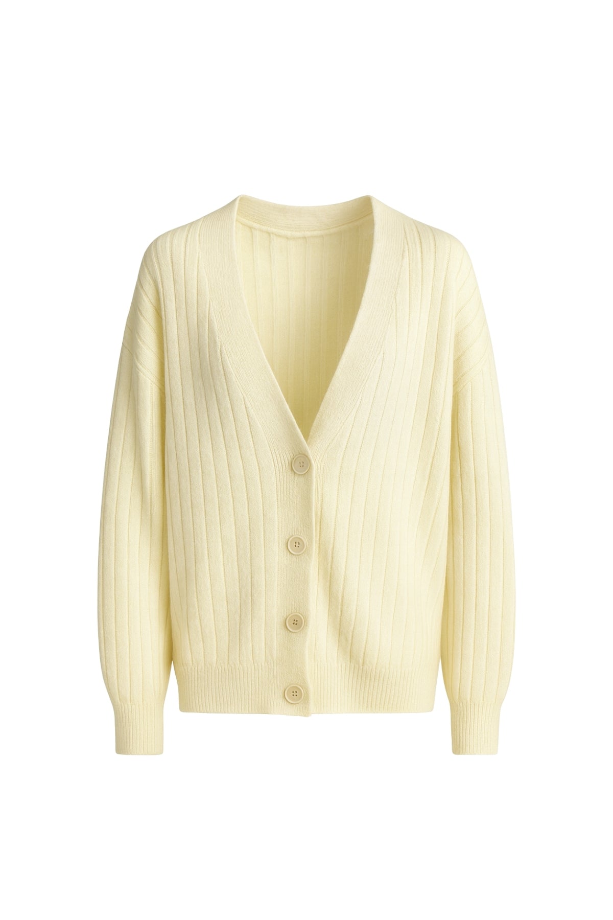 Düğmeli V Yaka Sarı Triko Hırka