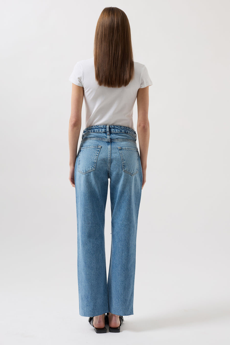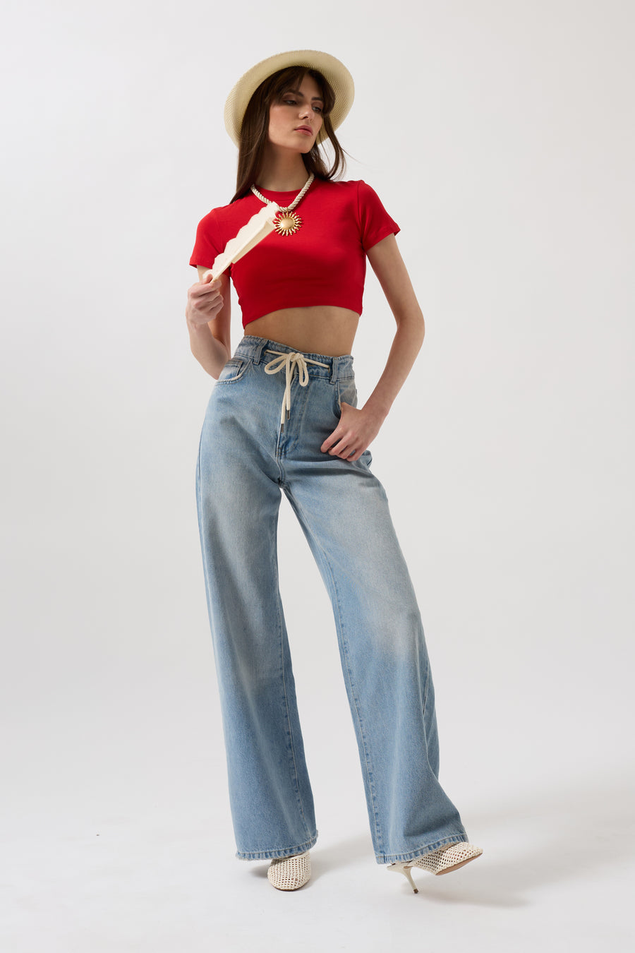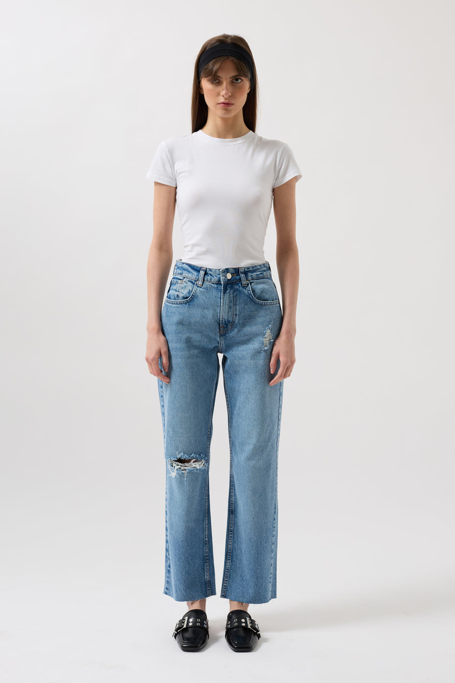Wide leg jeanler geniş paça kesimiyle hem rahat hem şık bir görünüm sağlar. Basic üstler veya crop bluzlarla tamamlanabilir.