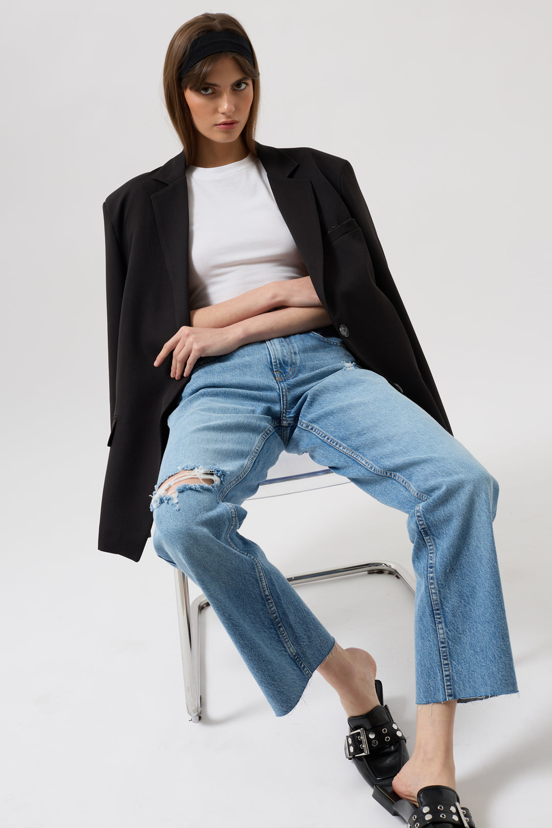 Ripped jeanler yırtık detaylarıyla genç ve dinamik bir stil oluşturur. Sneaker ve basic tişörtle tamamlayarak sokak stilinizi vurgulayabilirsiniz.