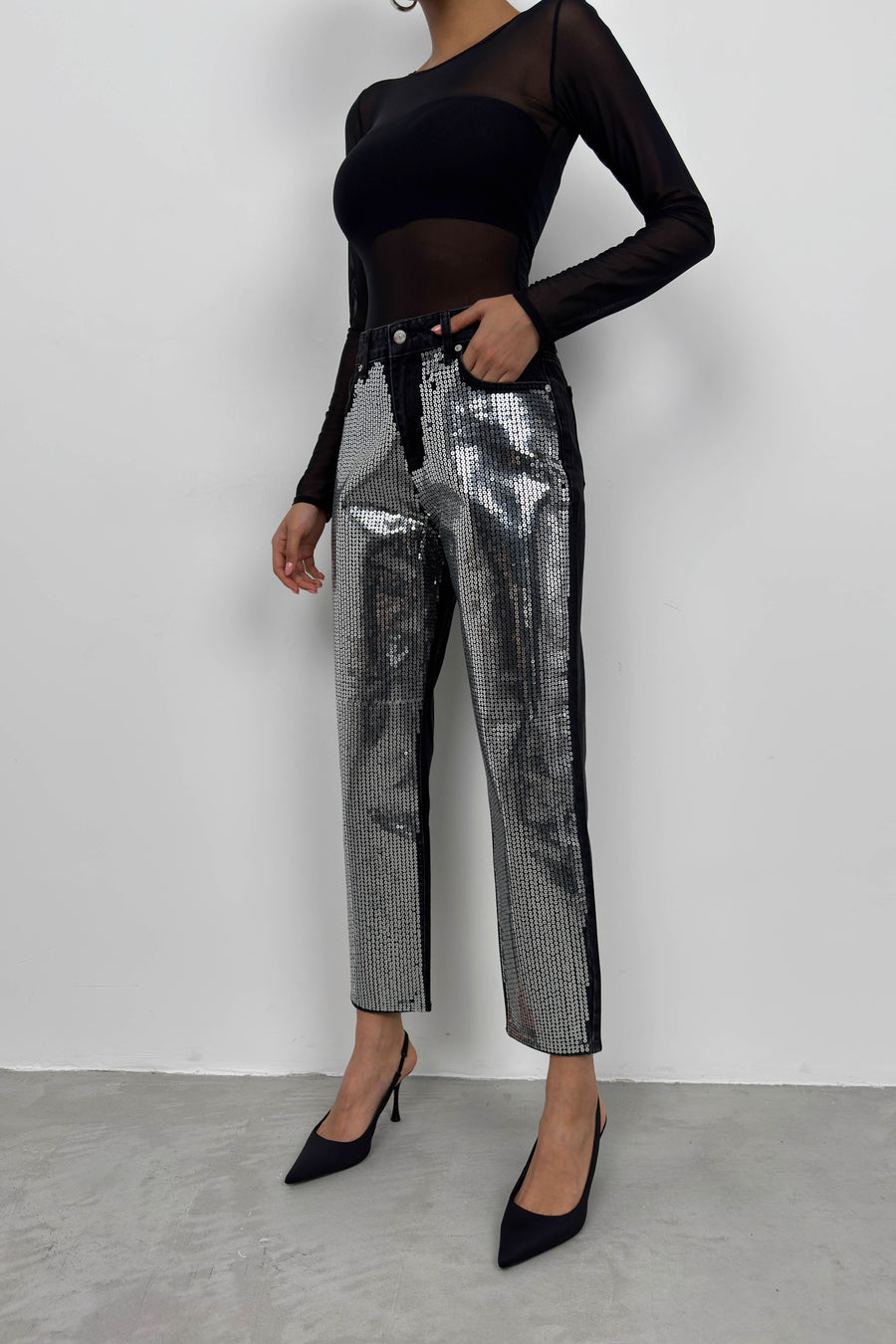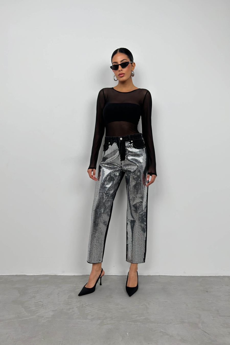 Wide leg veya skinny jeanler saten bluz ve statement takılarla gece kombinlerine sofistike bir hava katar. Topuklu ayakkabılarla stilinizi tamamlayın.