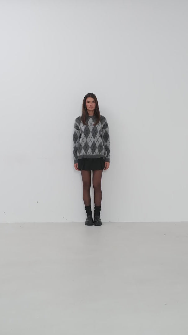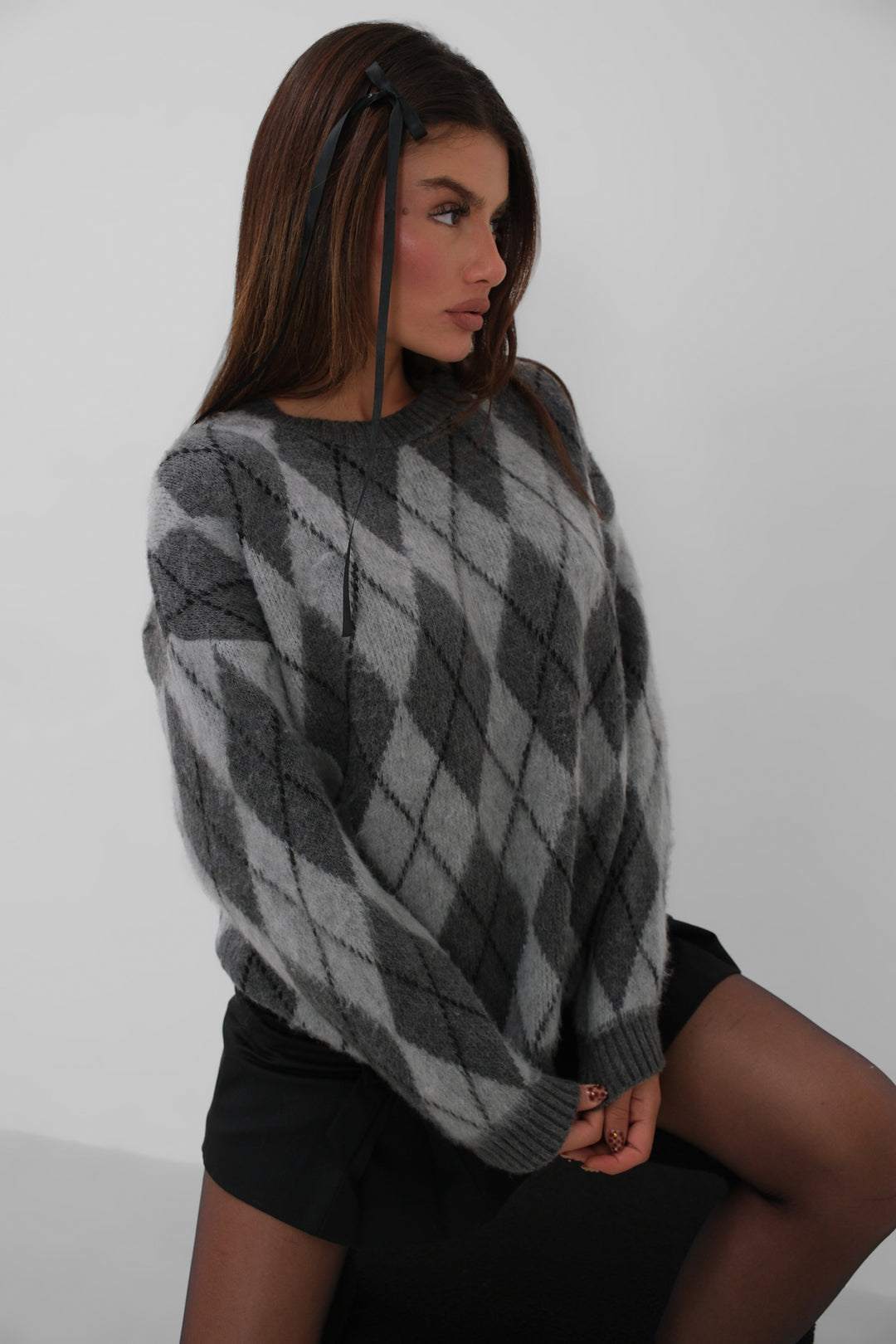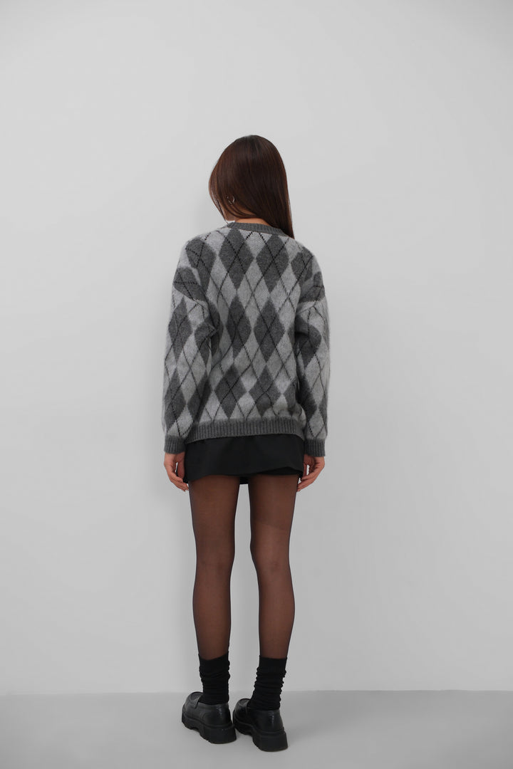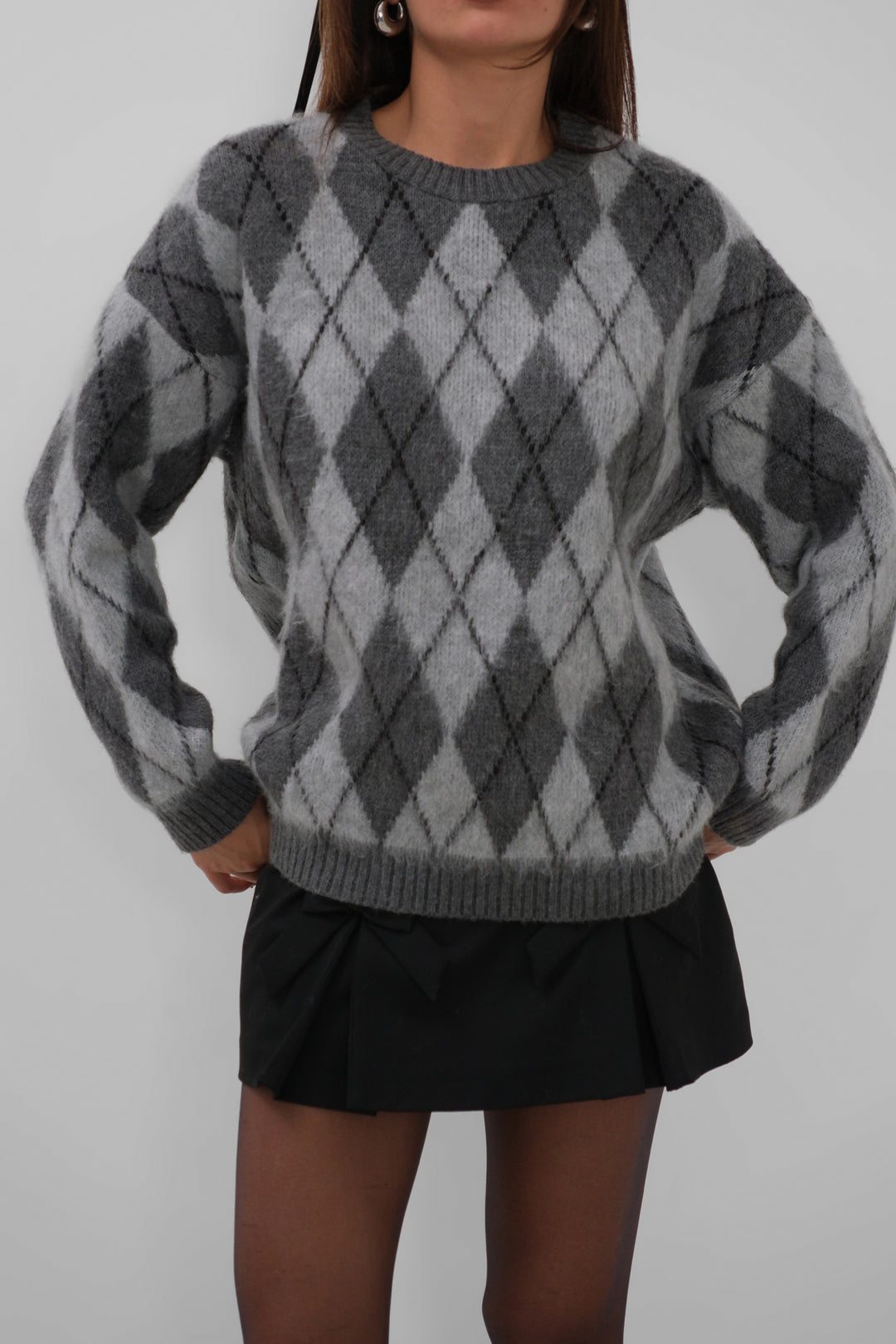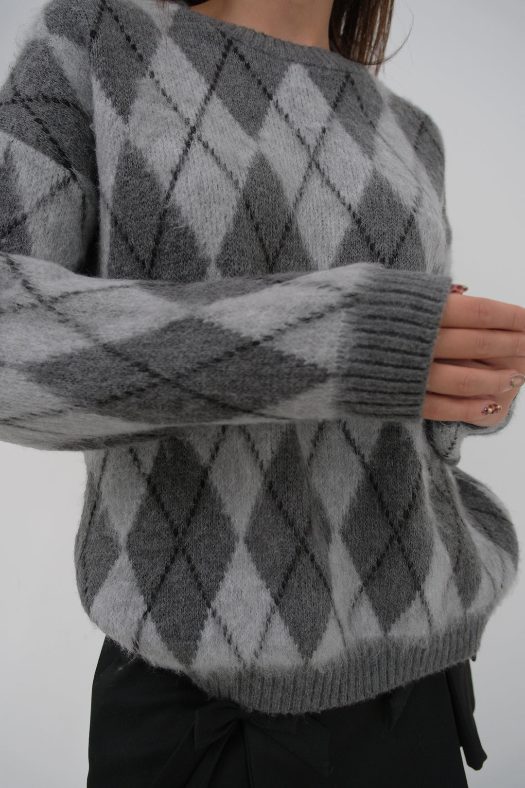 Bisiklet Yaka, Çift Renkli, Baklava Desenli Triko Kazak