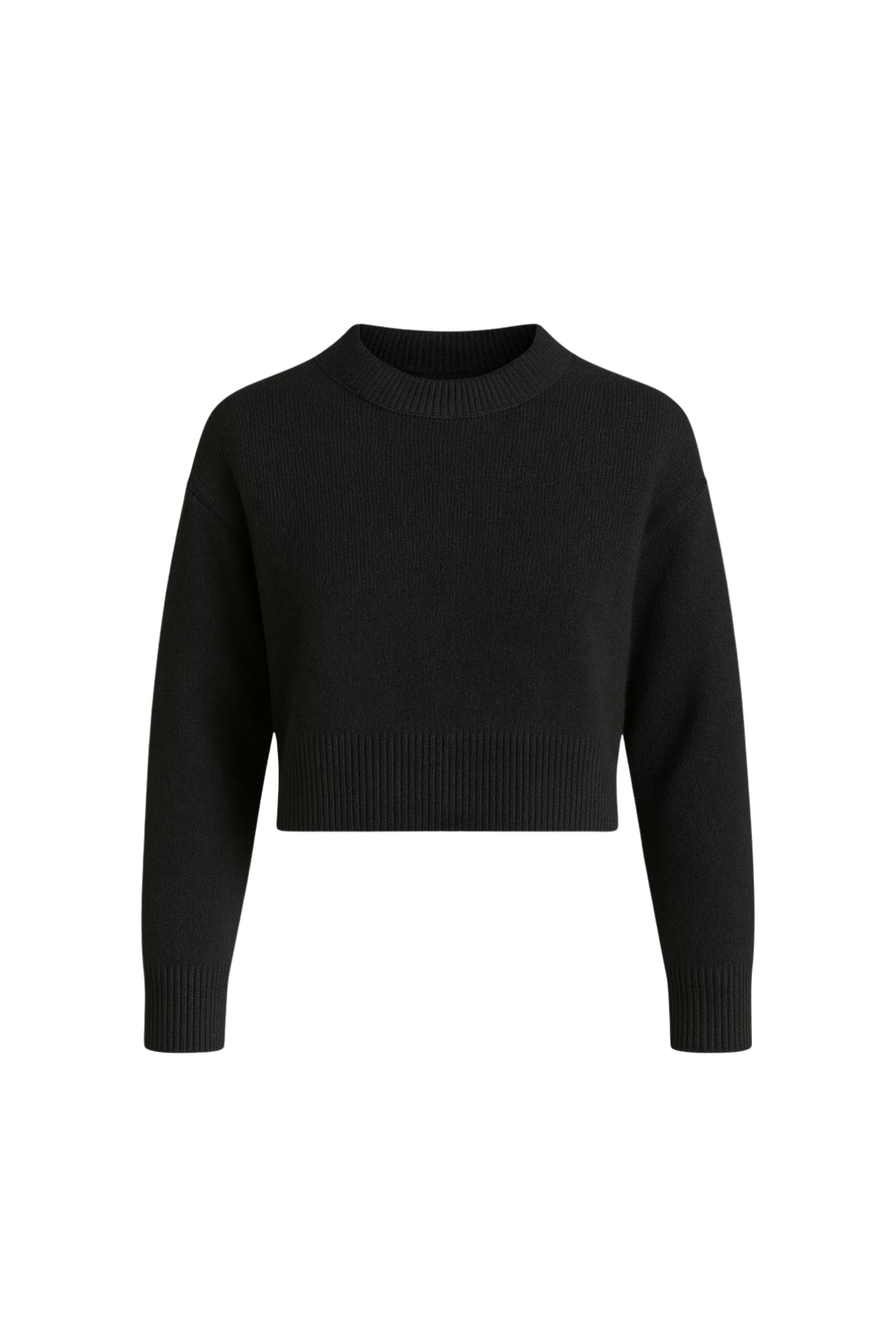 Bisiklet Yaka Crop Siyah Triko Kazak