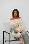 Uzun Kollu, Geniş Manşet, Madonna Yaka, Düşük Omuz, Bluz, Kazak, Fashion, Esnek, Rahat Kalıp