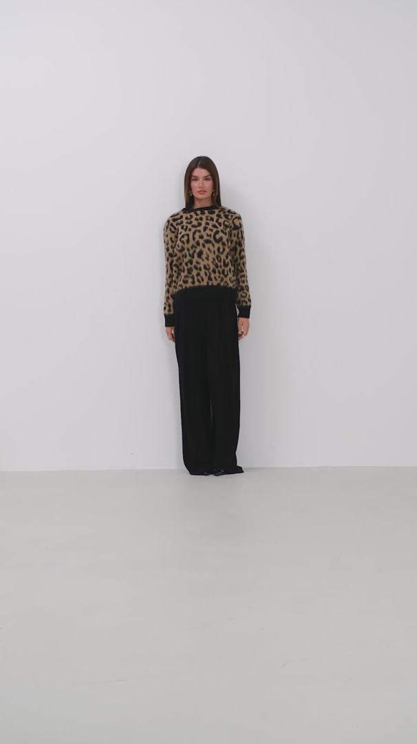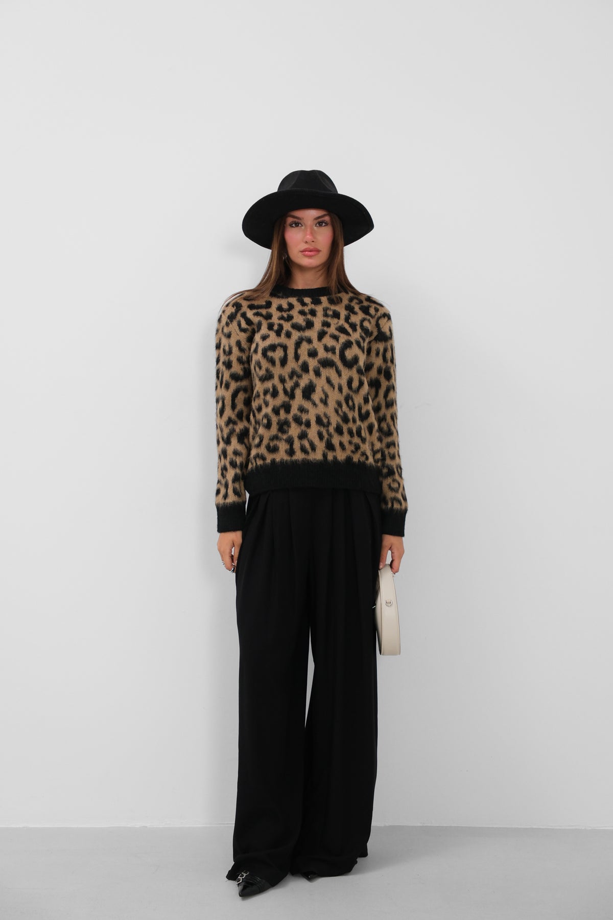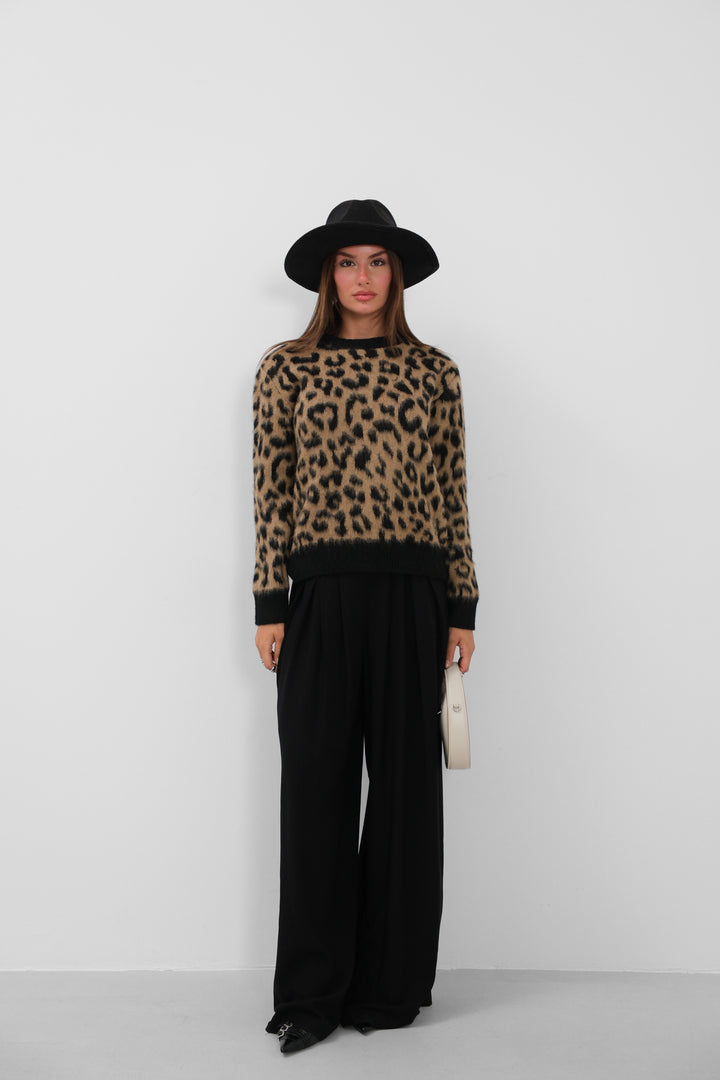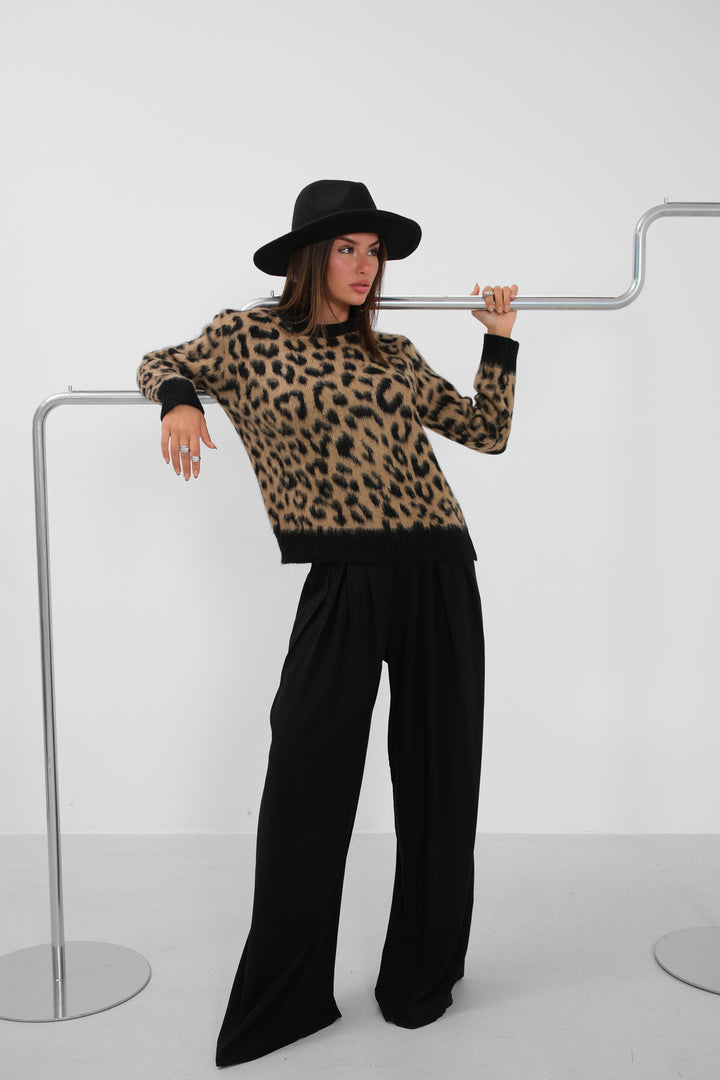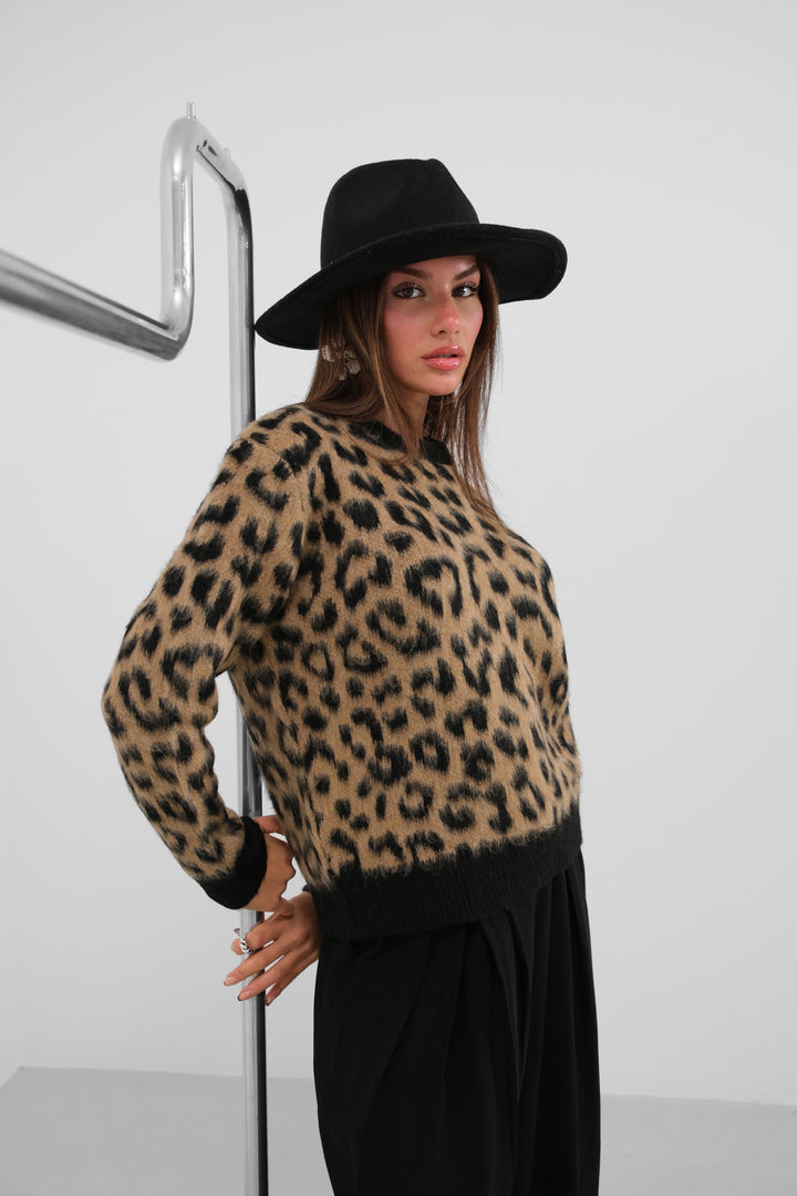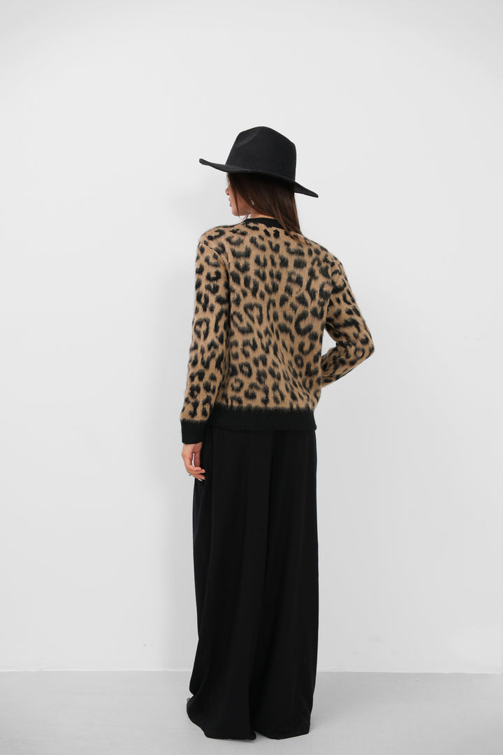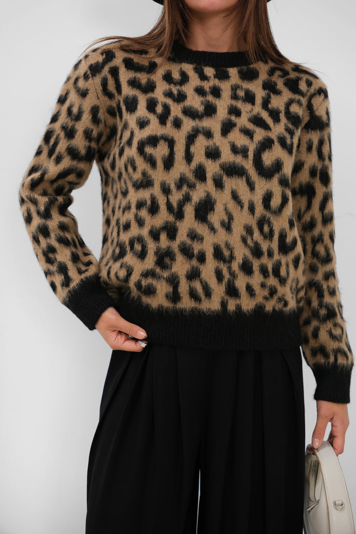 Leopar Desen, Kazak, Trend, Rahat Kalıp, Sakallı İplik
