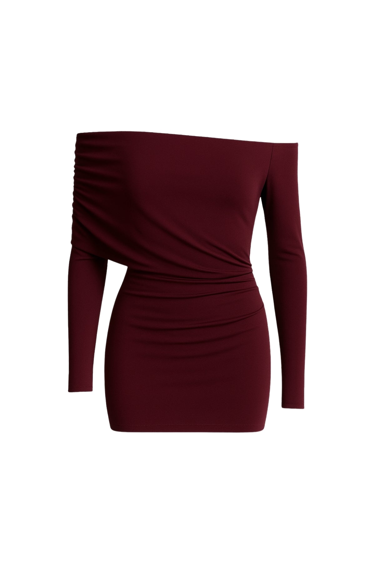Büzgü Detay Bordo Straplez Mini Elbise