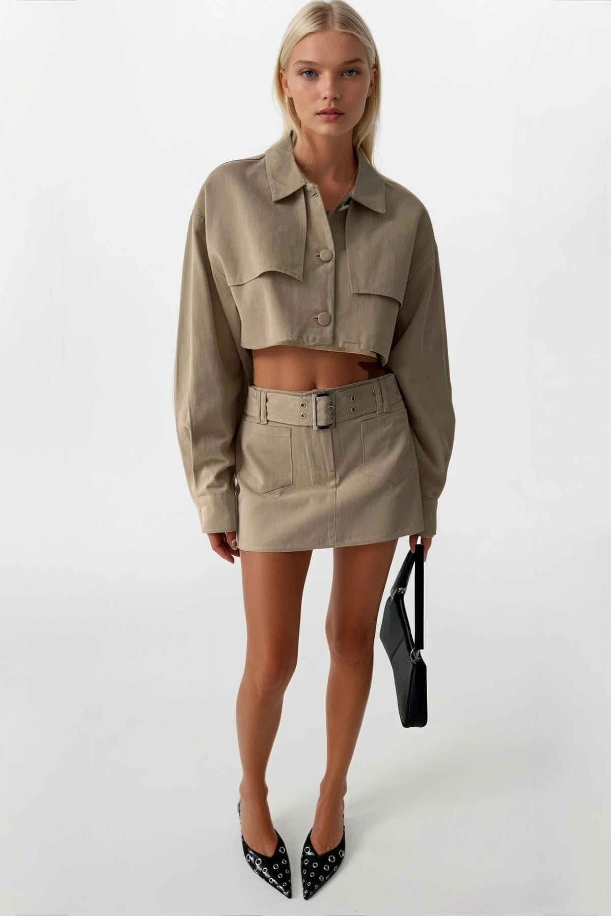 Metal Tokalı Kemer Detaylı, Çift Köprülü, İki Cepli, Mini Boy Etek