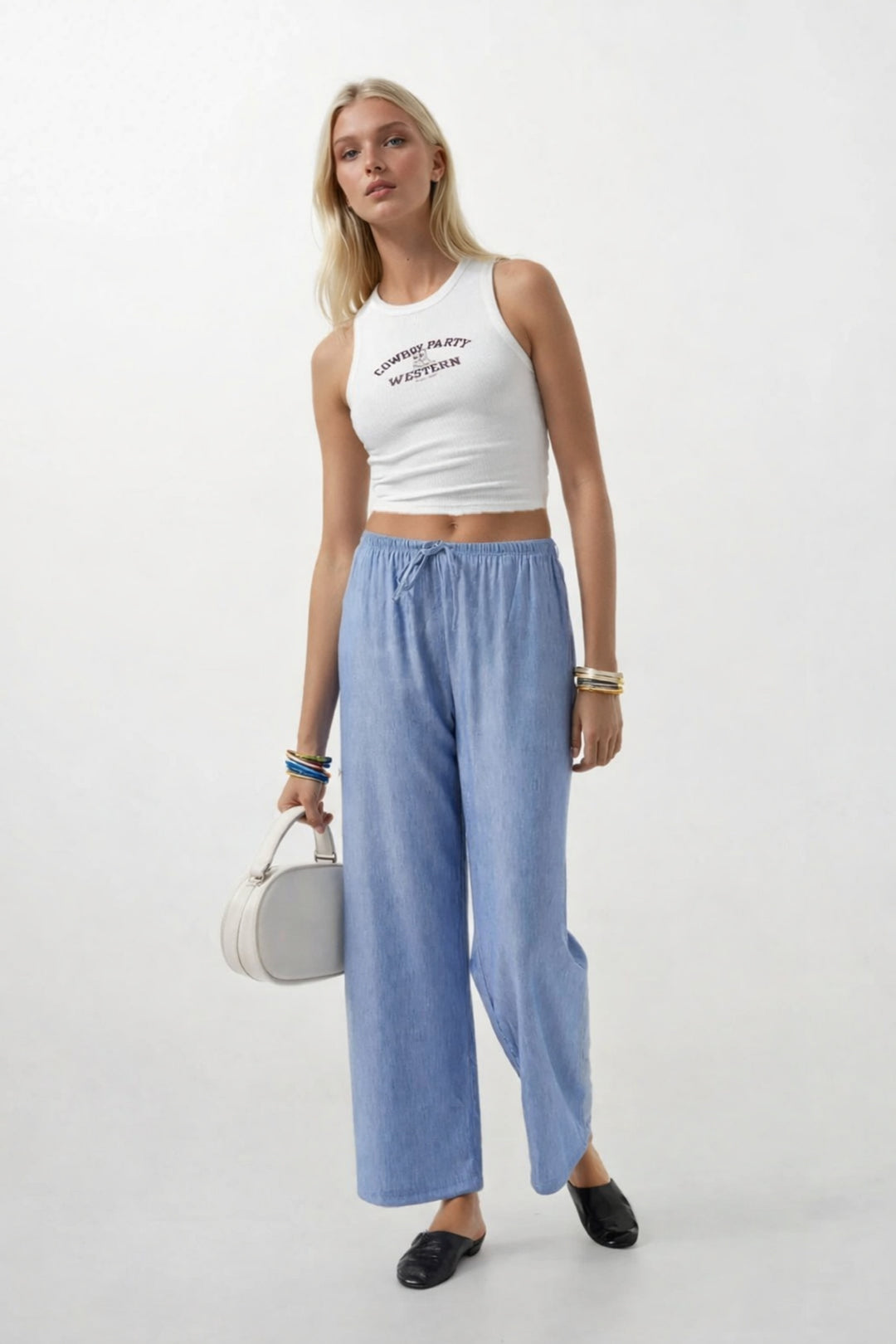 Palazzo pantolonlar geniş paça tasarımıyla rahat hareket imkanı sunar. Saten bluzlar veya basic tişörtlerle kombinlenerek hem günlük hem özel kombinlerde kullanılabilir.