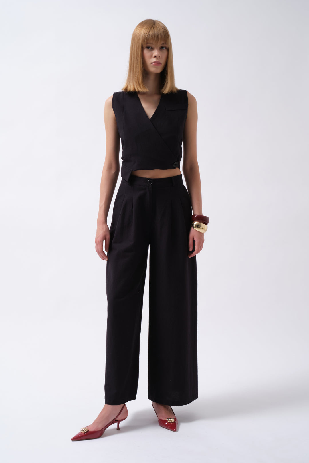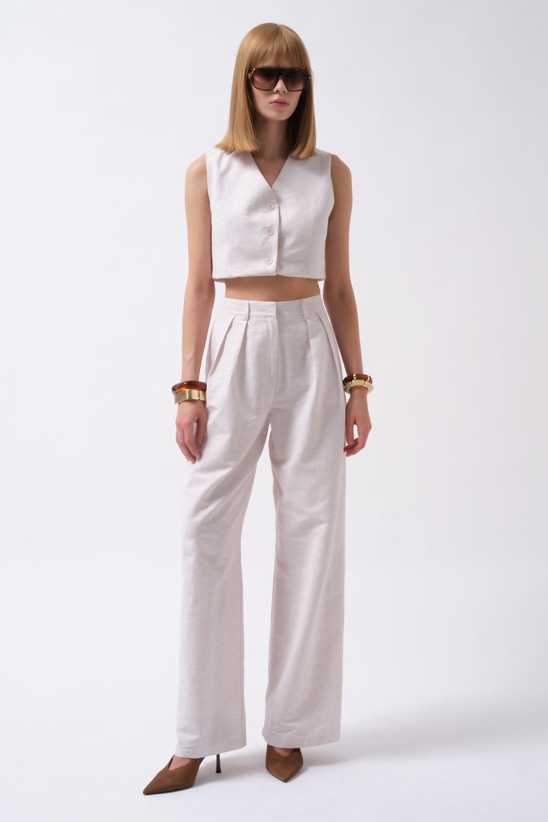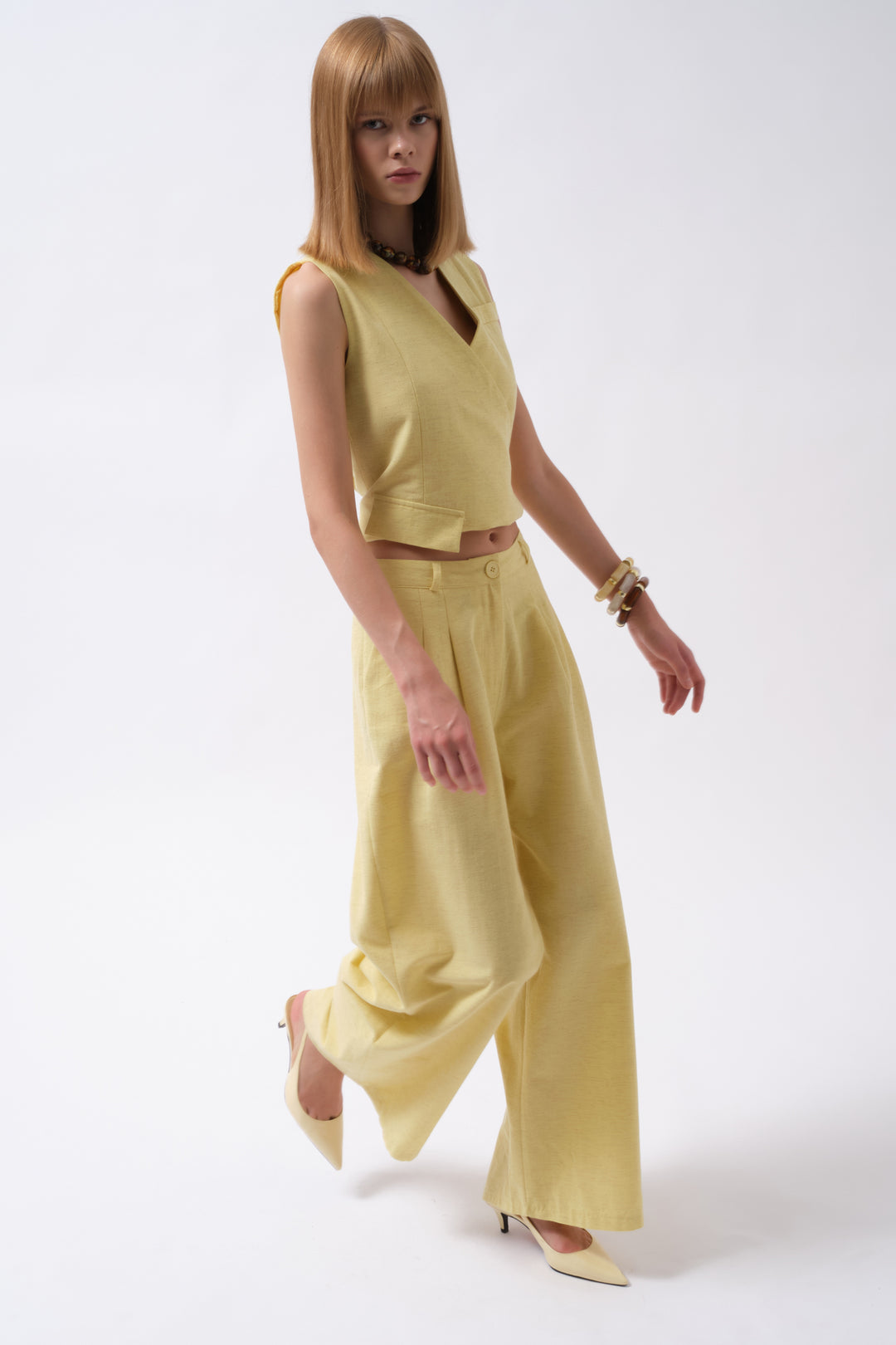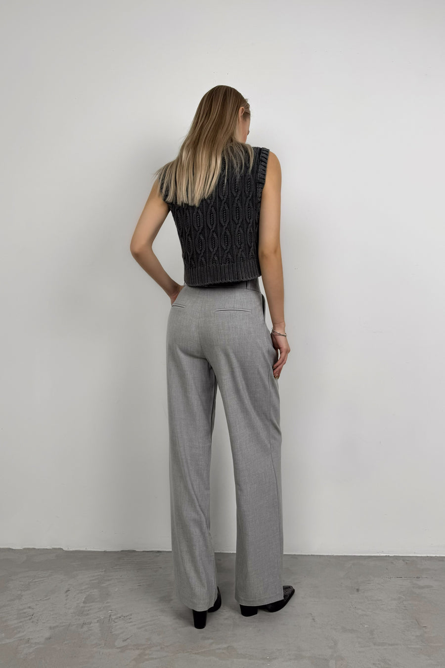 Yüksek bel pantolonlar, vücut hatlarını zarifçe öne çıkarır ve bacak boyunu uzun gösterir. Crop bluzlar veya gömleklerle kombinlenerek şık bir görünüm elde edebilirsiniz.