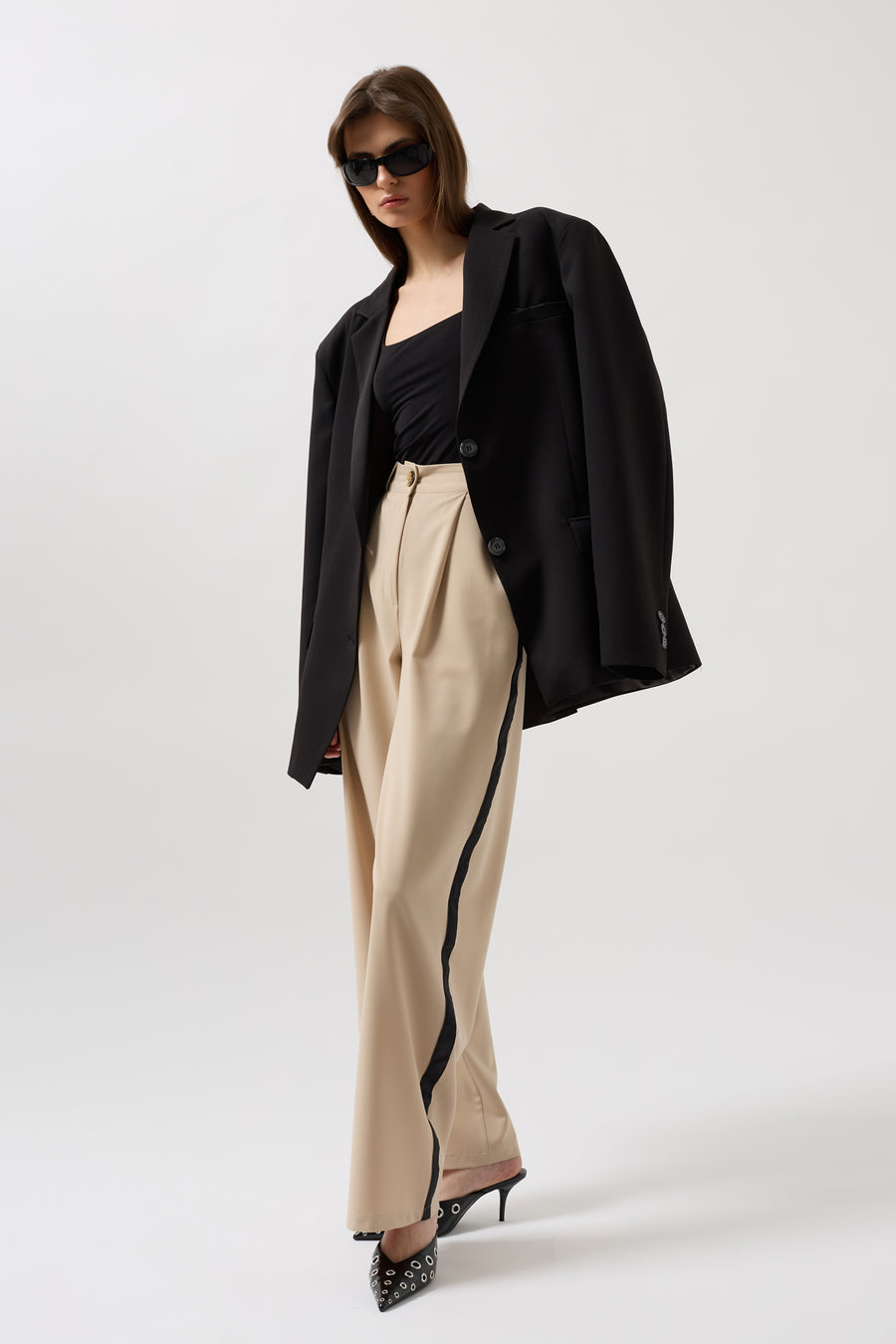 Pantolon kombinlerinizi blazer ceket, trençkot veya oversize gömleklerle katmanlayarak farklı hava koşullarına uyum sağlayabilirsiniz.