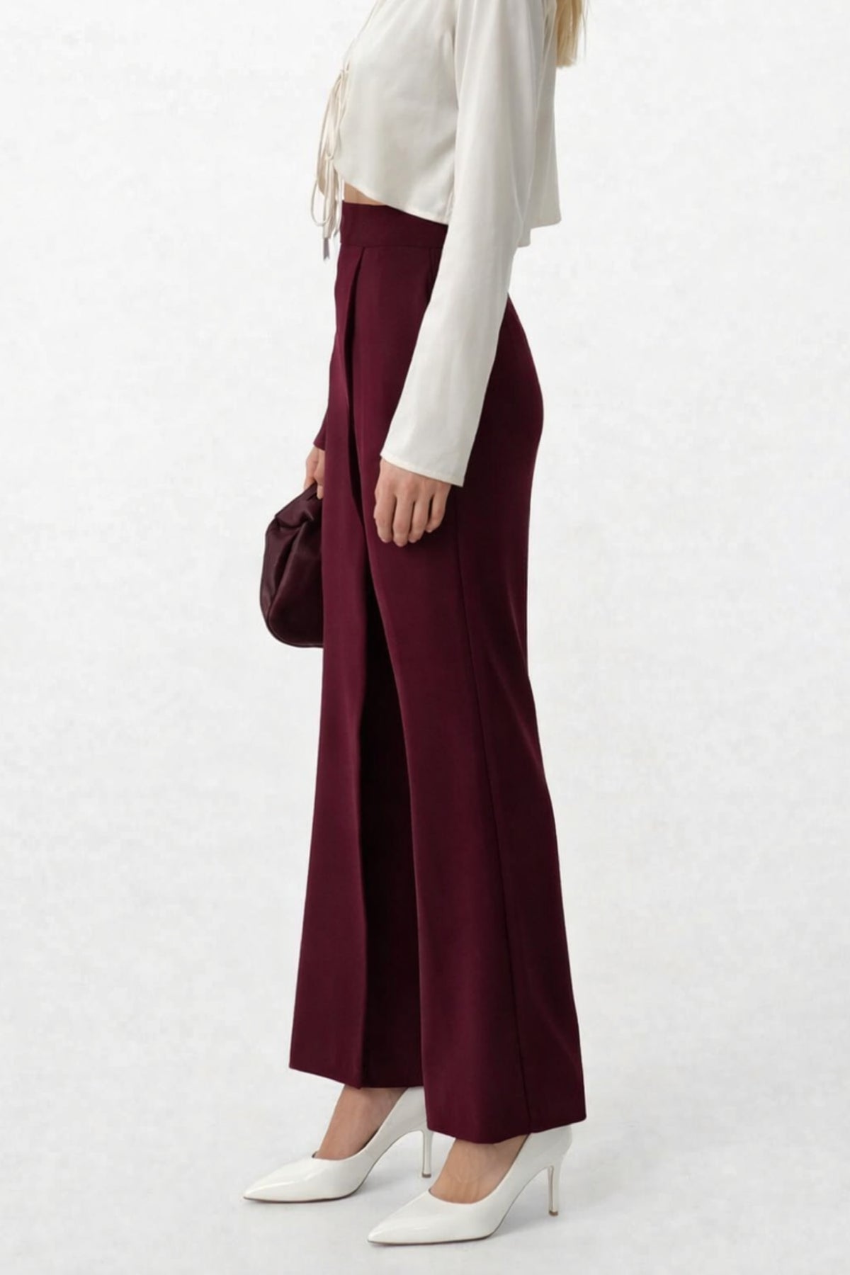 Anvelop Detay Asimetrik Bordo Pantolon