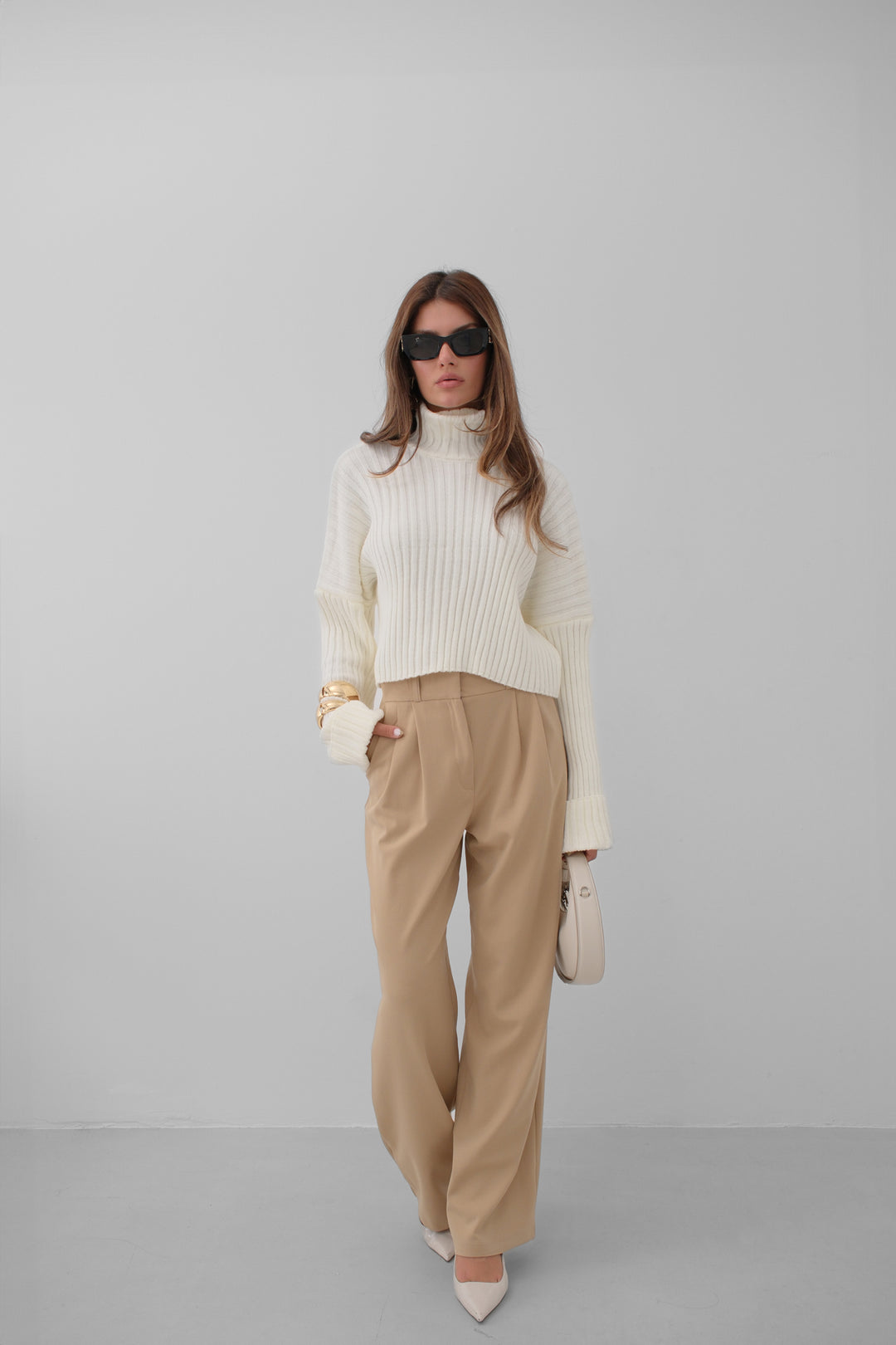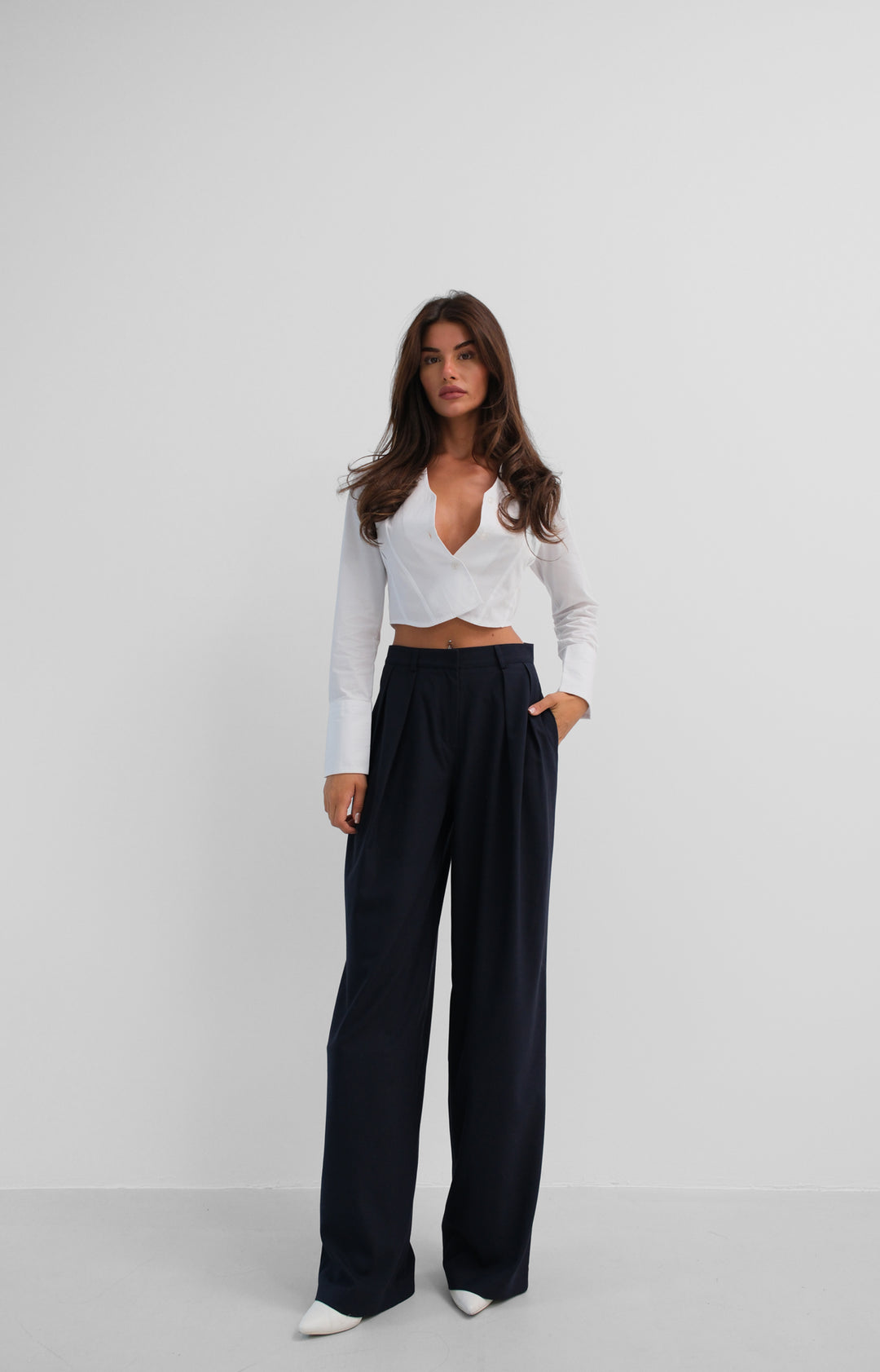 Yüksek bel pantolonlar, vücut hatlarını zarifçe öne çıkarır ve bacak boyunu uzun gösterir. Crop bluzlar veya gömleklerle kombinlenerek şık bir görünüm elde edebilirsiniz.