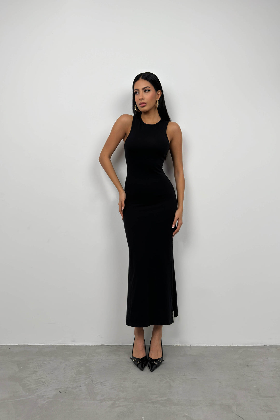 Sırt Dekolte Maxi Siyah Elbise