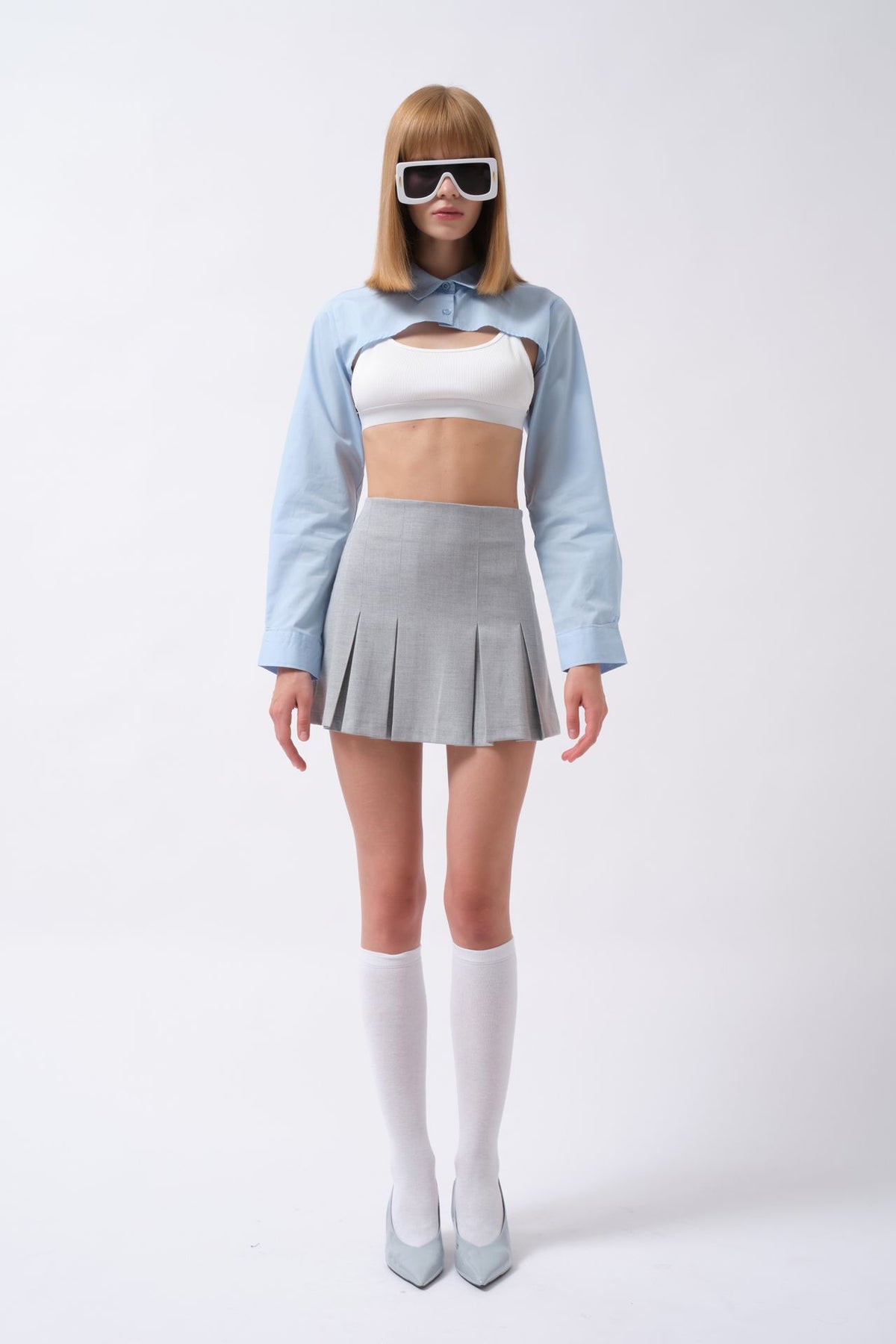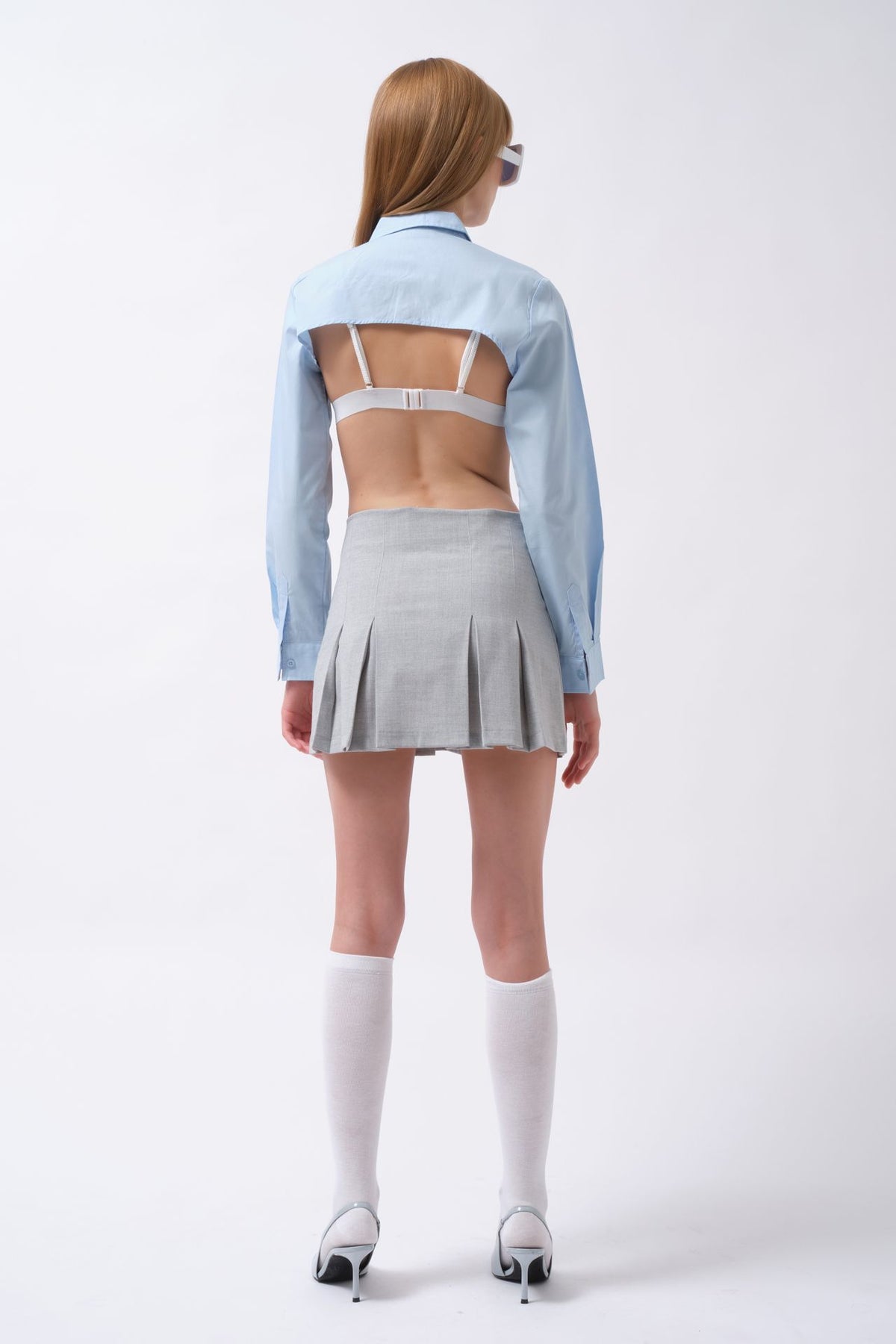 Oval Kesim, Gömlek Yaka, Uzun Kollu, Ultra Crop Gömlek