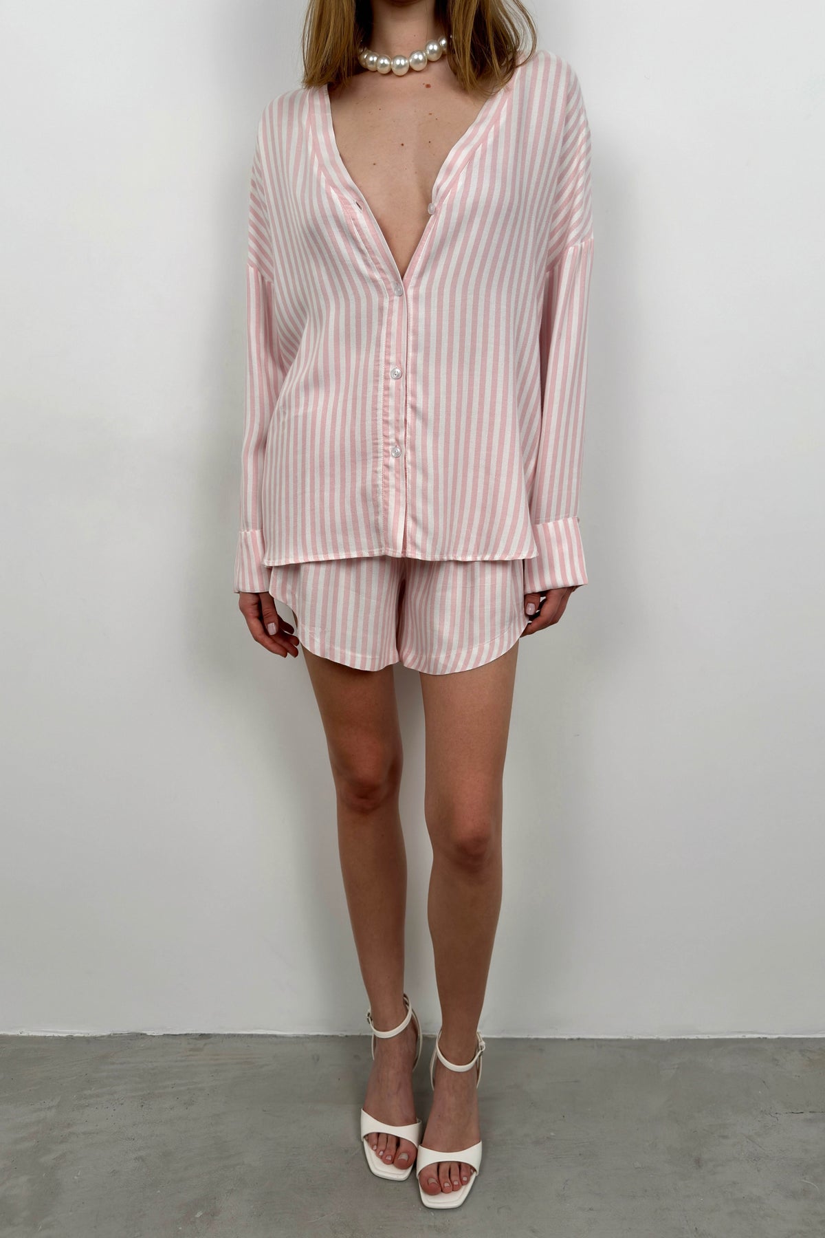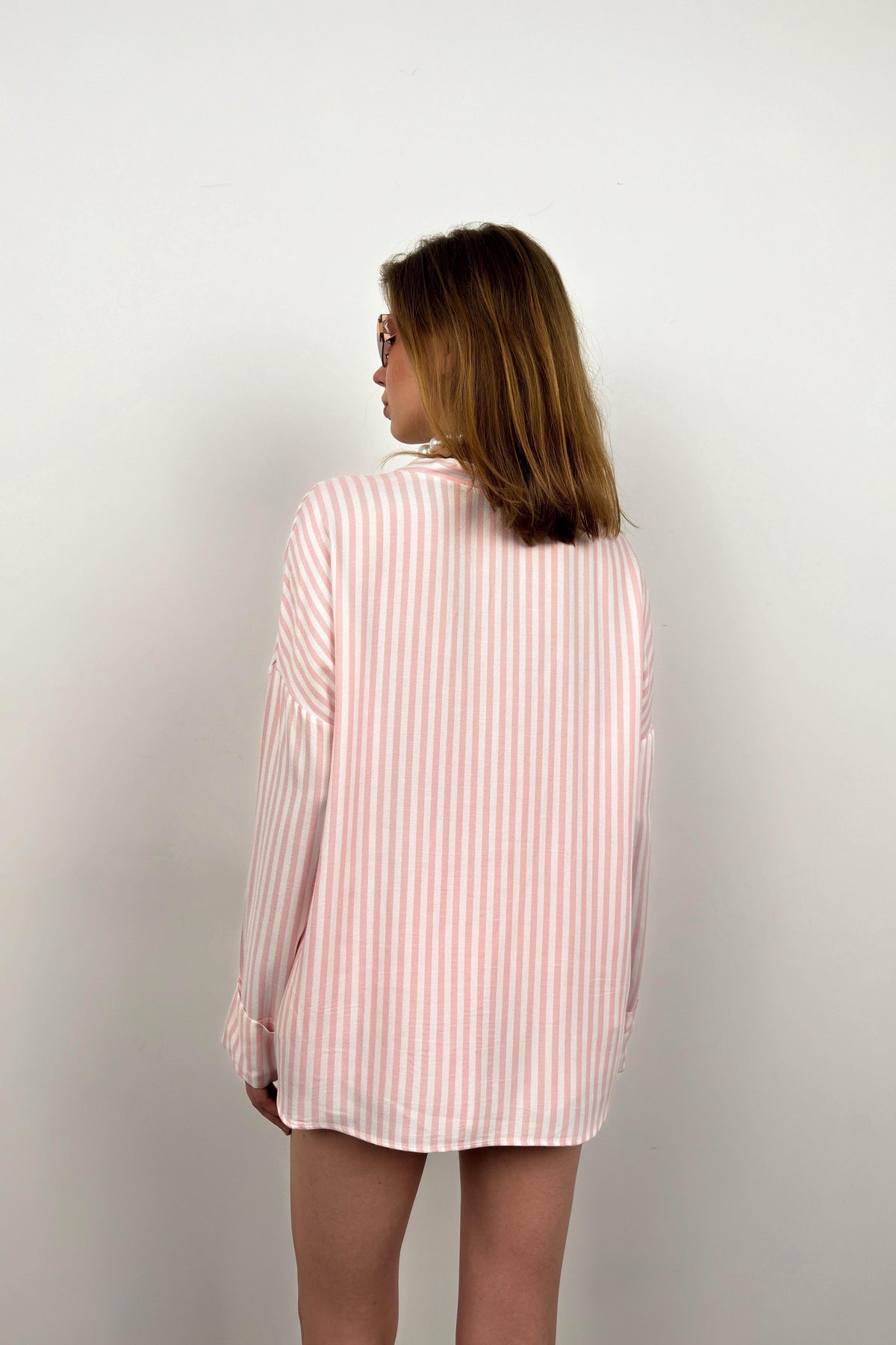 Çizgili Gömlek Pembe Şort Takım