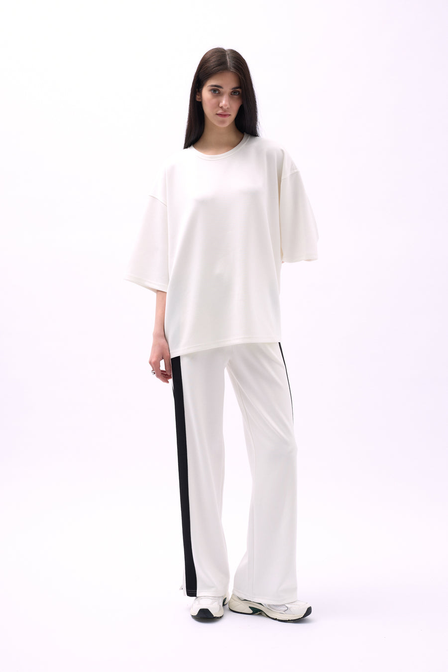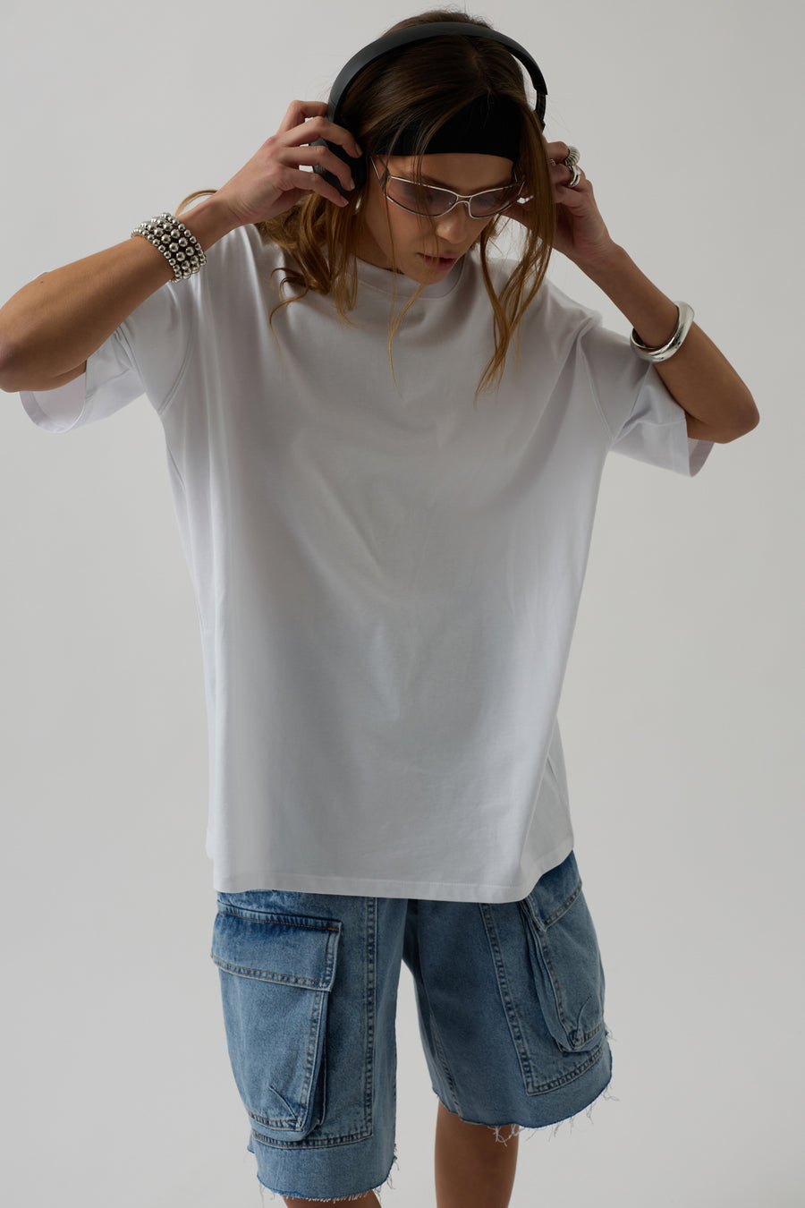 Oversize t-shirtler rahat kalıplarıyla salaş şıklık sunar. Dar paça jean veya biker taytlarla kombinlenerek modern bir görünüm elde edilir.