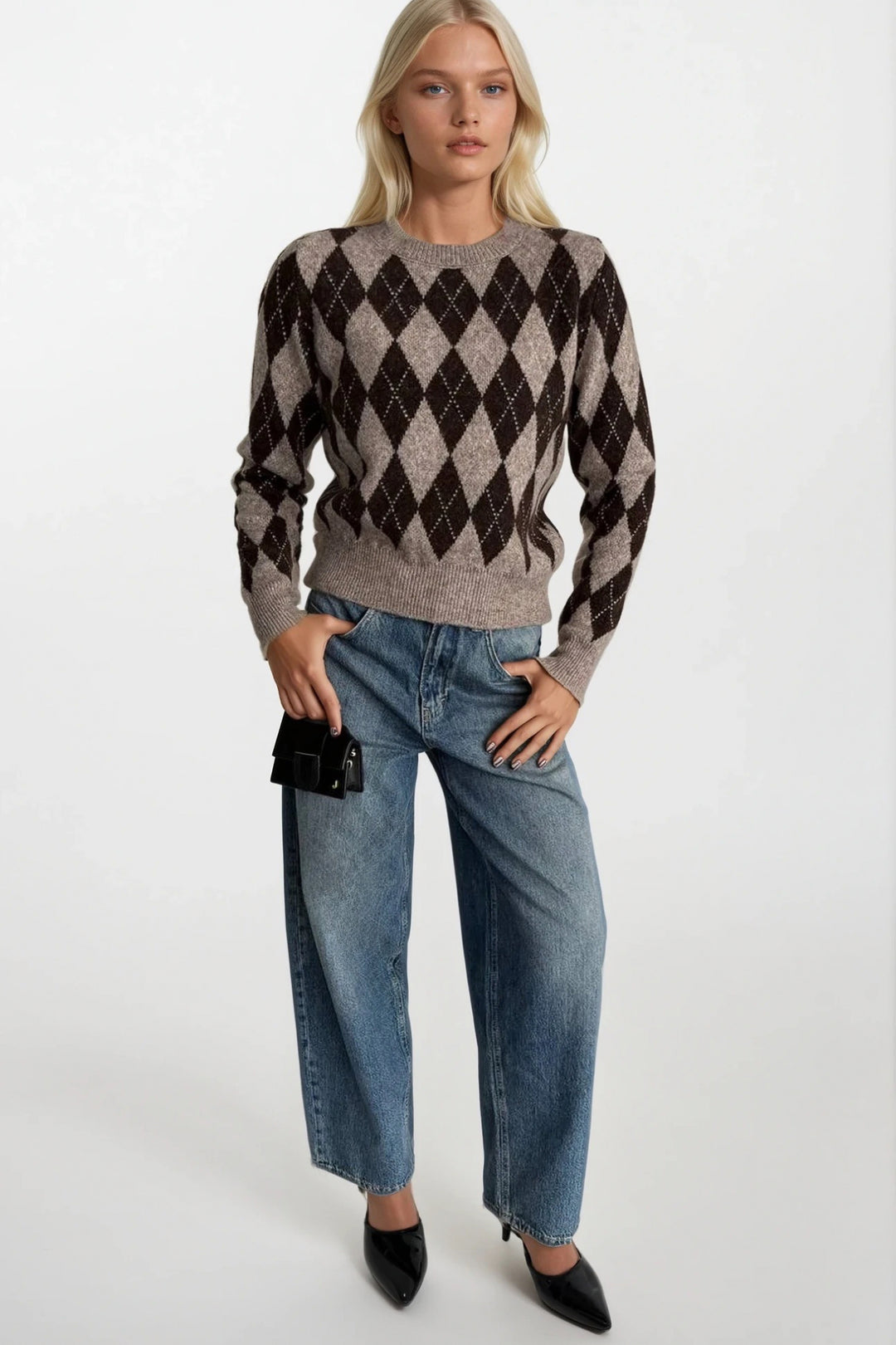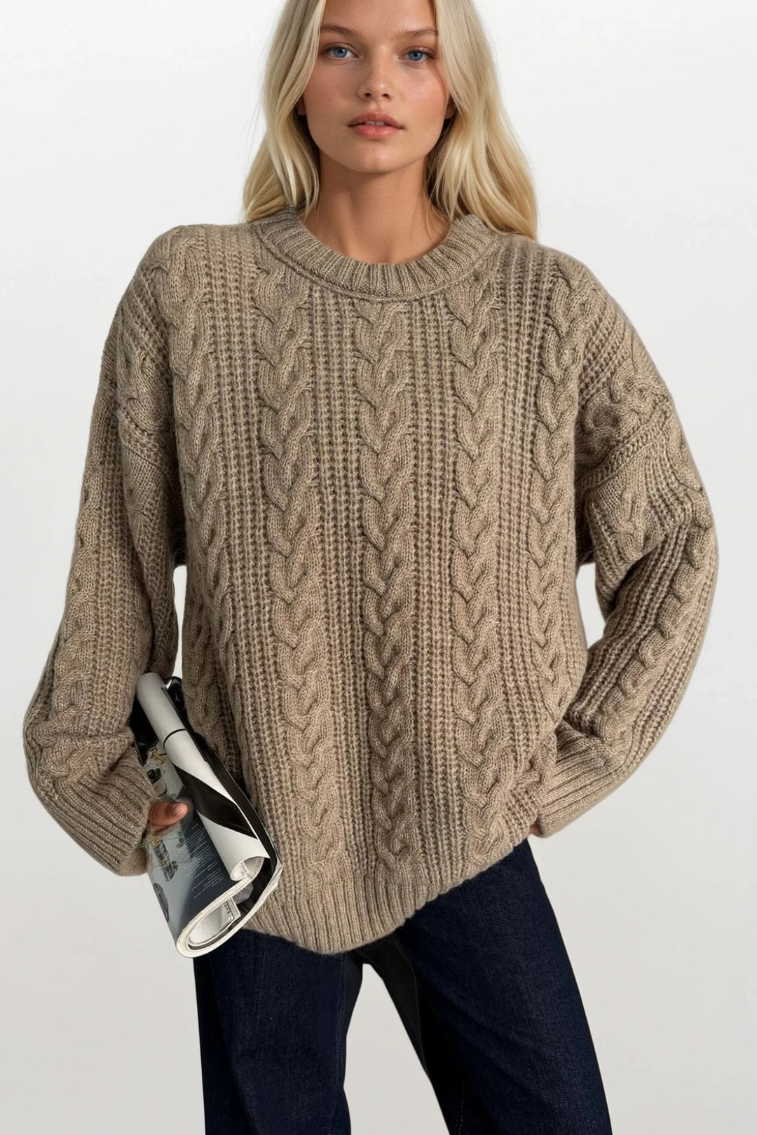 Örgü Desen Bej Basic Triko Kazak