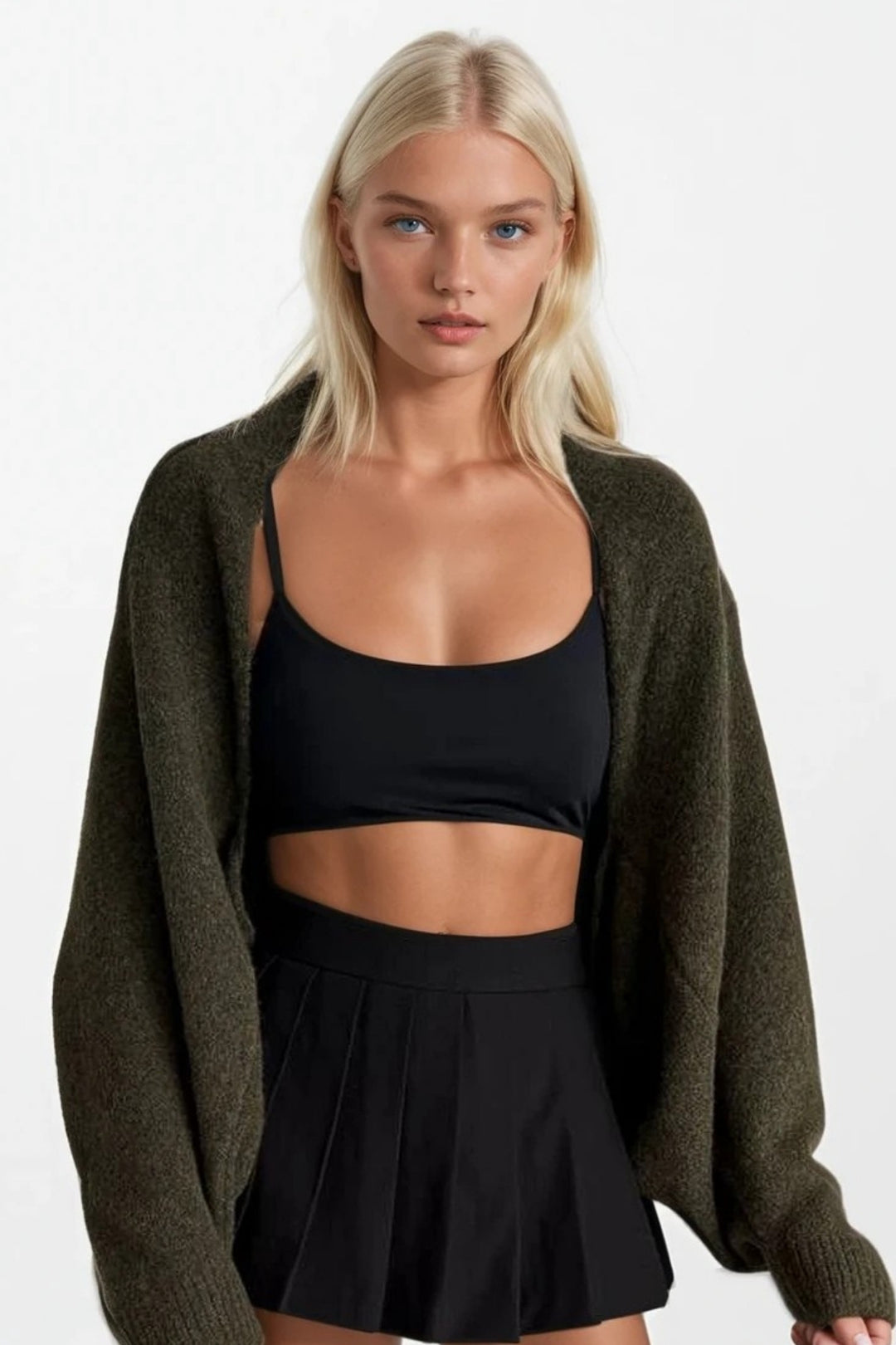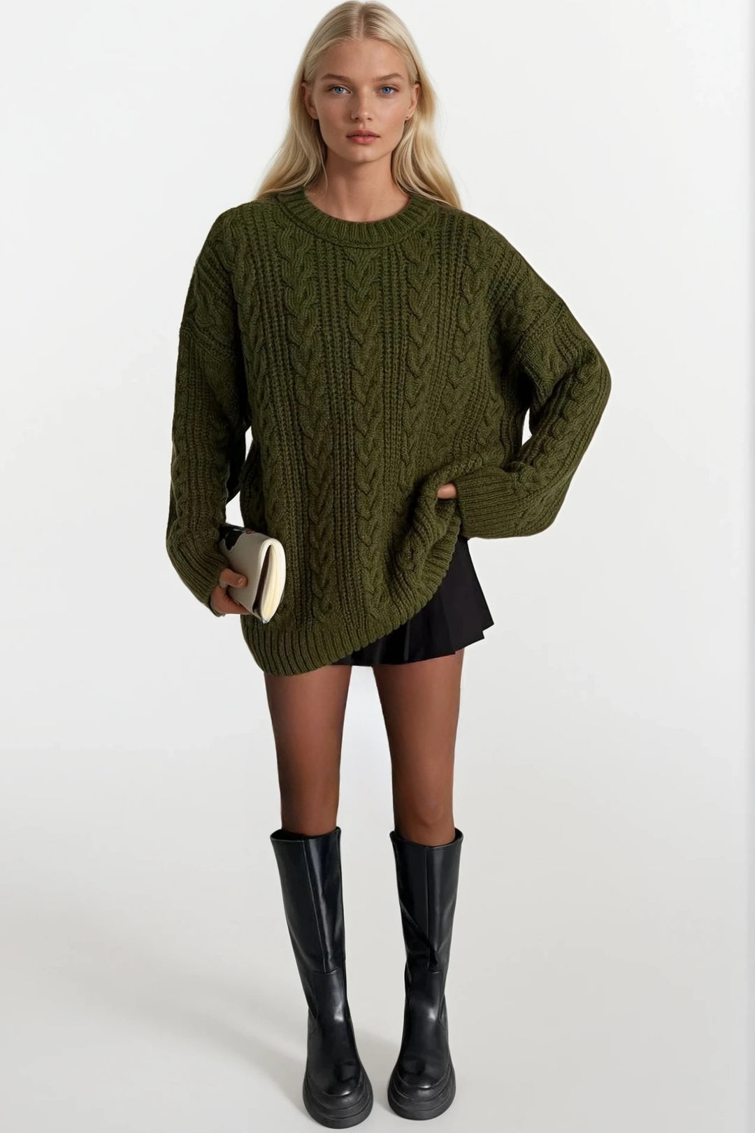 Örgü Desen Haki Basic Triko Kazak