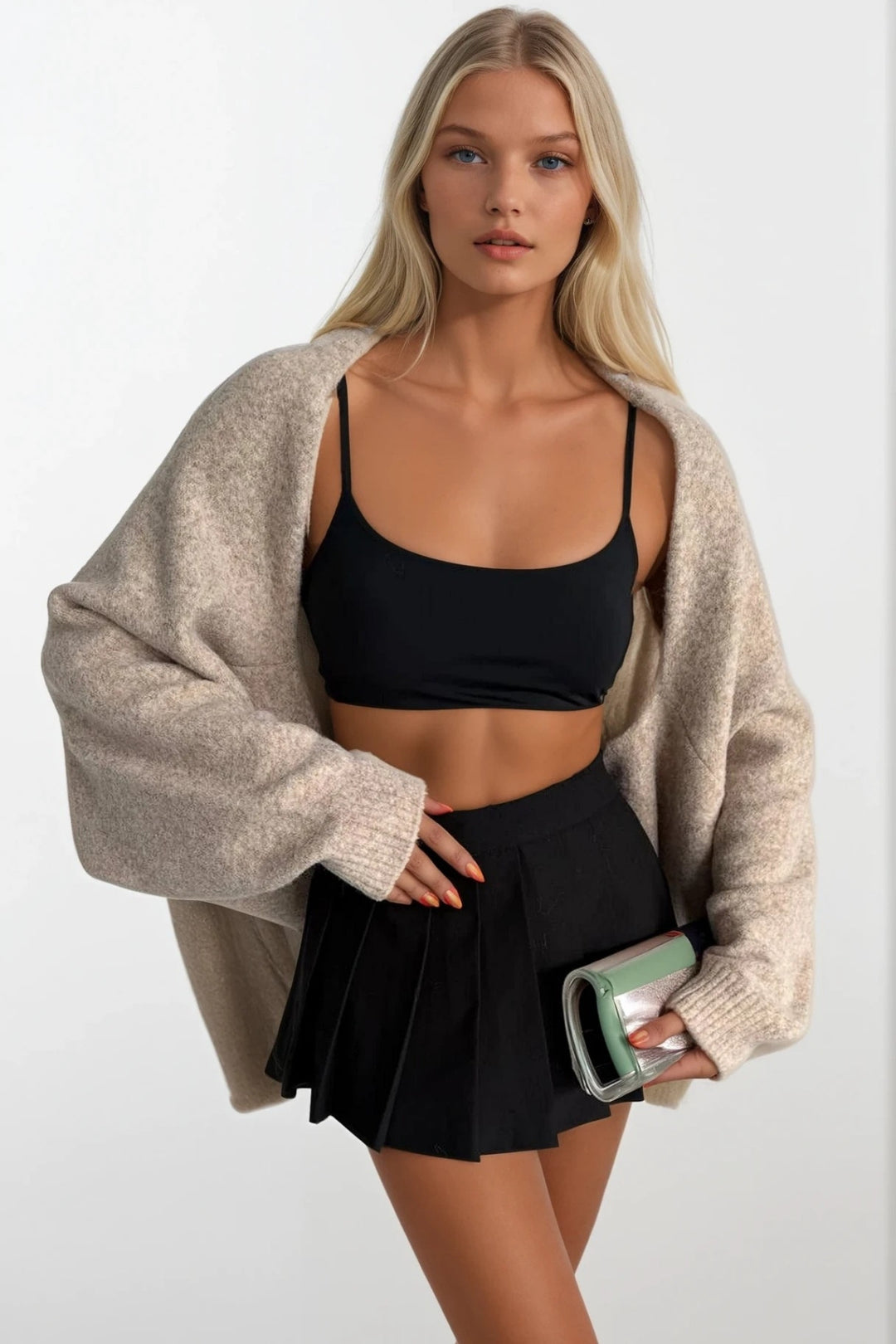 Kemer Detay Kruvaze Yaka Bej Triko Hırka
