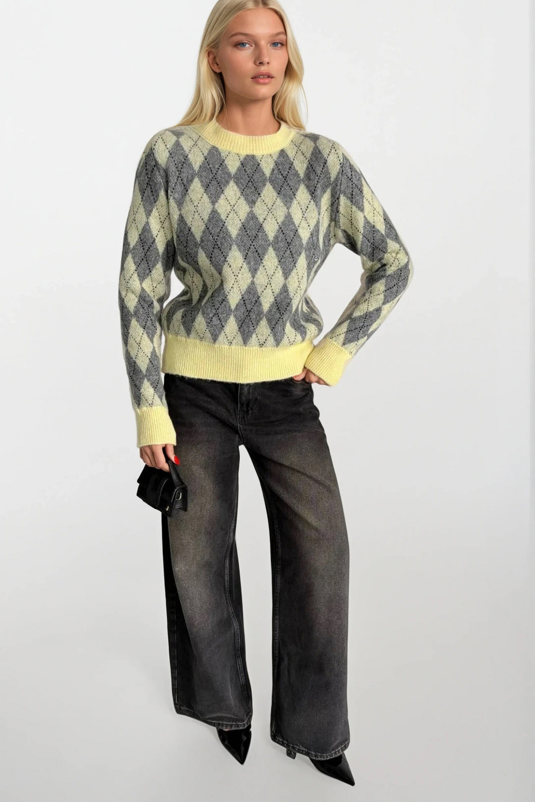 Baklava Desen Bisiklet Yaka Sarı Triko Kazak