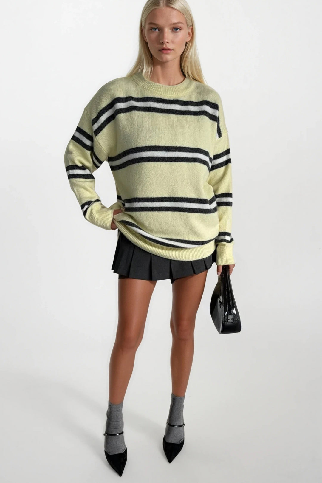 Bisiklet Yaka Çizgili Sarı Triko Kazak