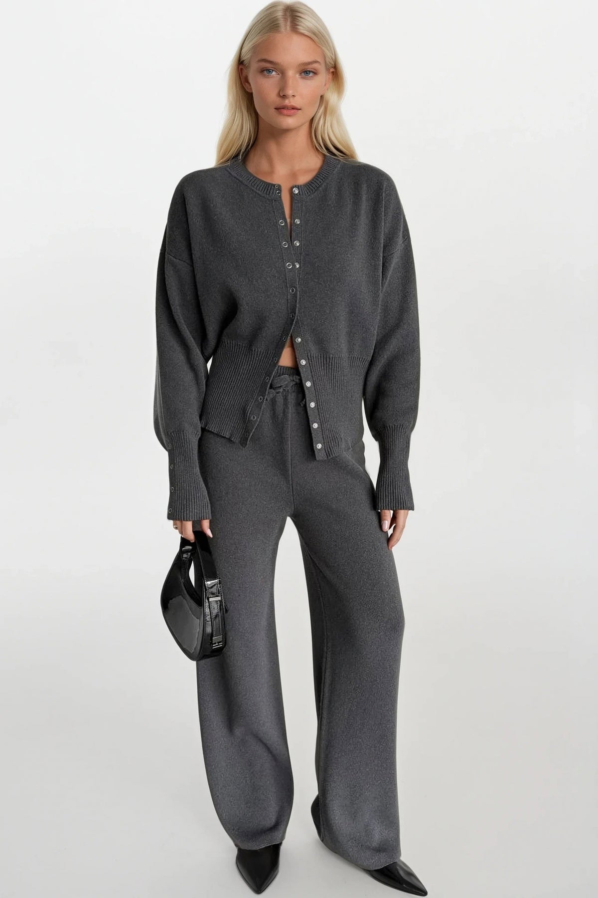 Düğme Detay Bel Oturtmalı Antrasit Triko Bluz Pantolon İkili Takım