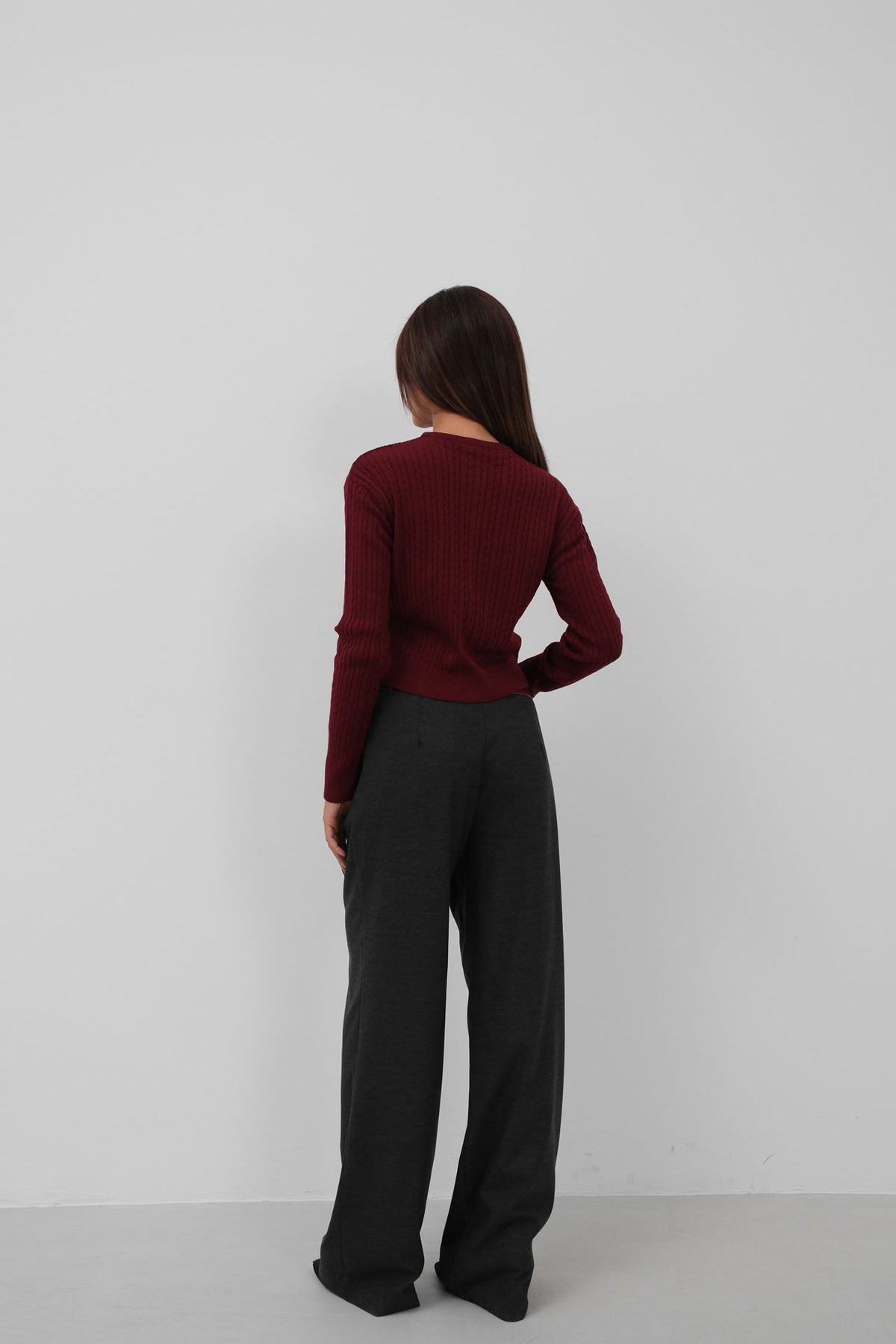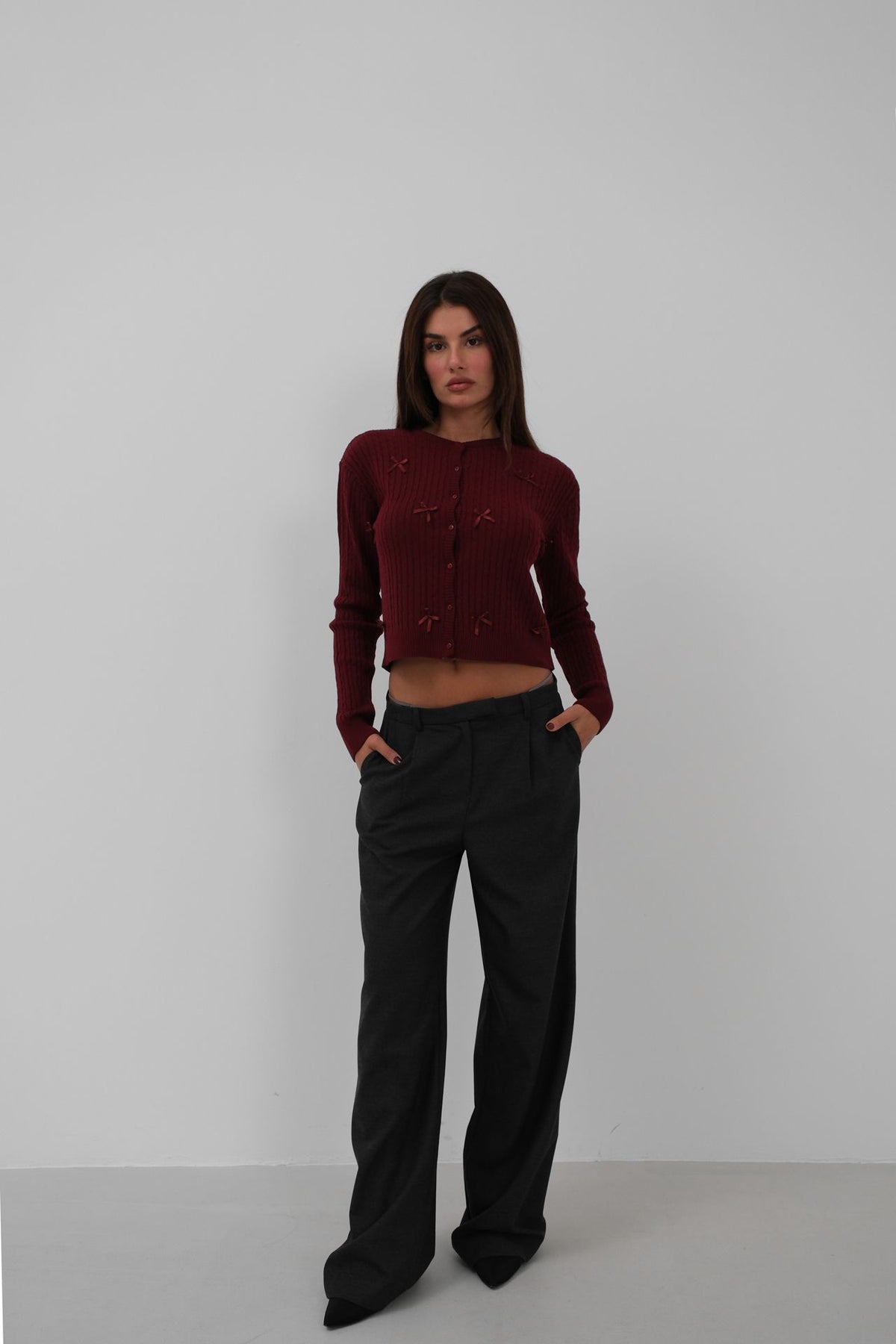 Örgü Detaylı, Sıfır Yaka, Önü Düğme Detaylı, Fiyonk Detaylı, Uzun Kollu, Yumuşak Dokulu, Fitilli Triko Kazak, Hırka