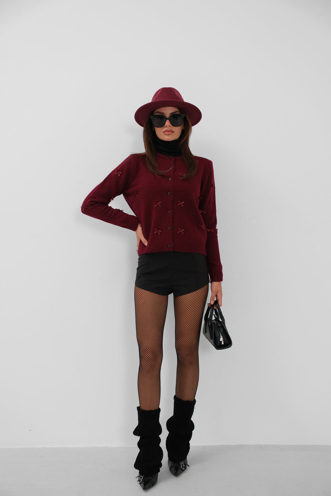 Yuvarlak Yakalı Oversize Triko Bordo Kazak