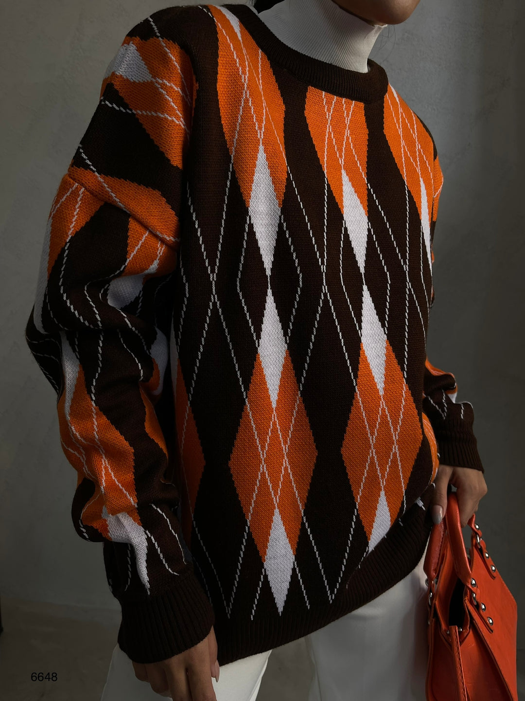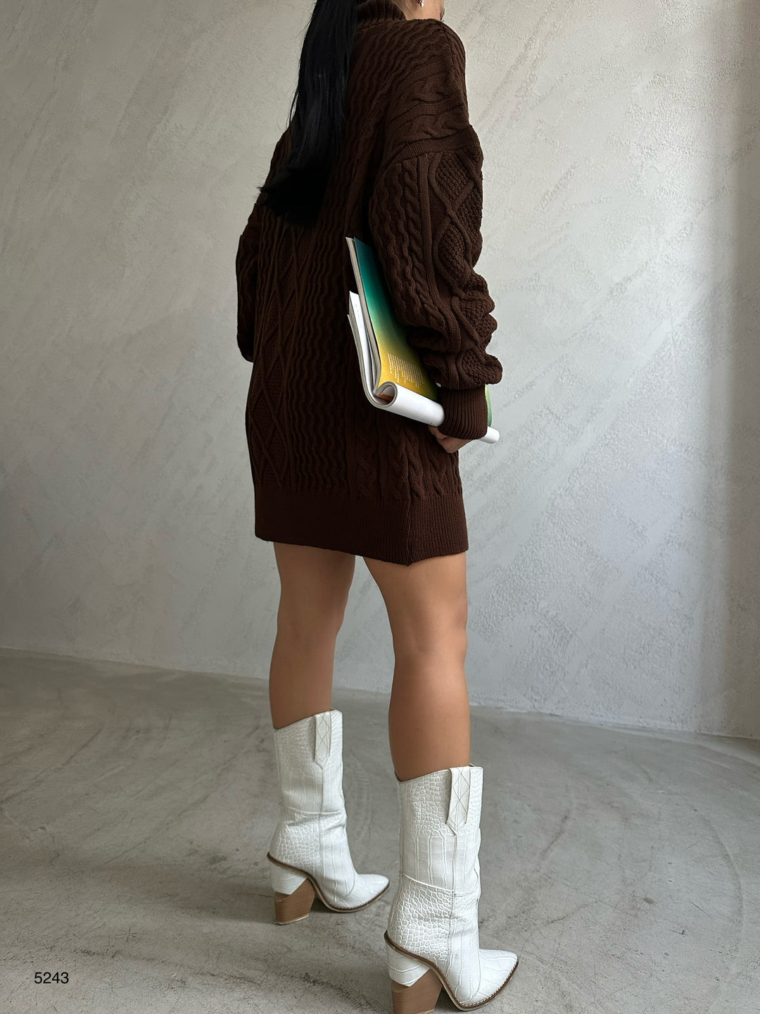 Oversize Boğazlı Kahverengi Örgü Kazak