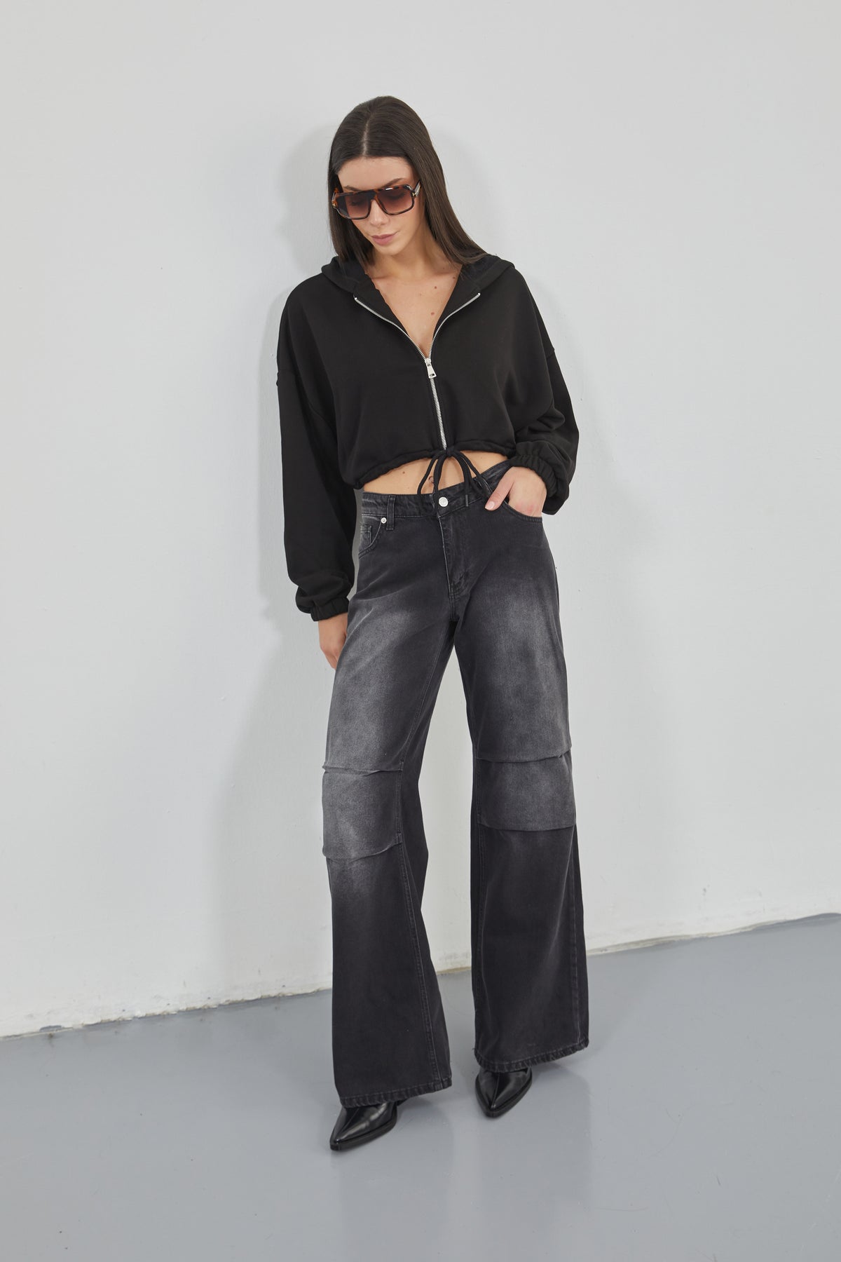 Five Pocket, Low Waist, Button and Zipper, Washed Effect, Sewing Detail, Denim Fabric Jeans