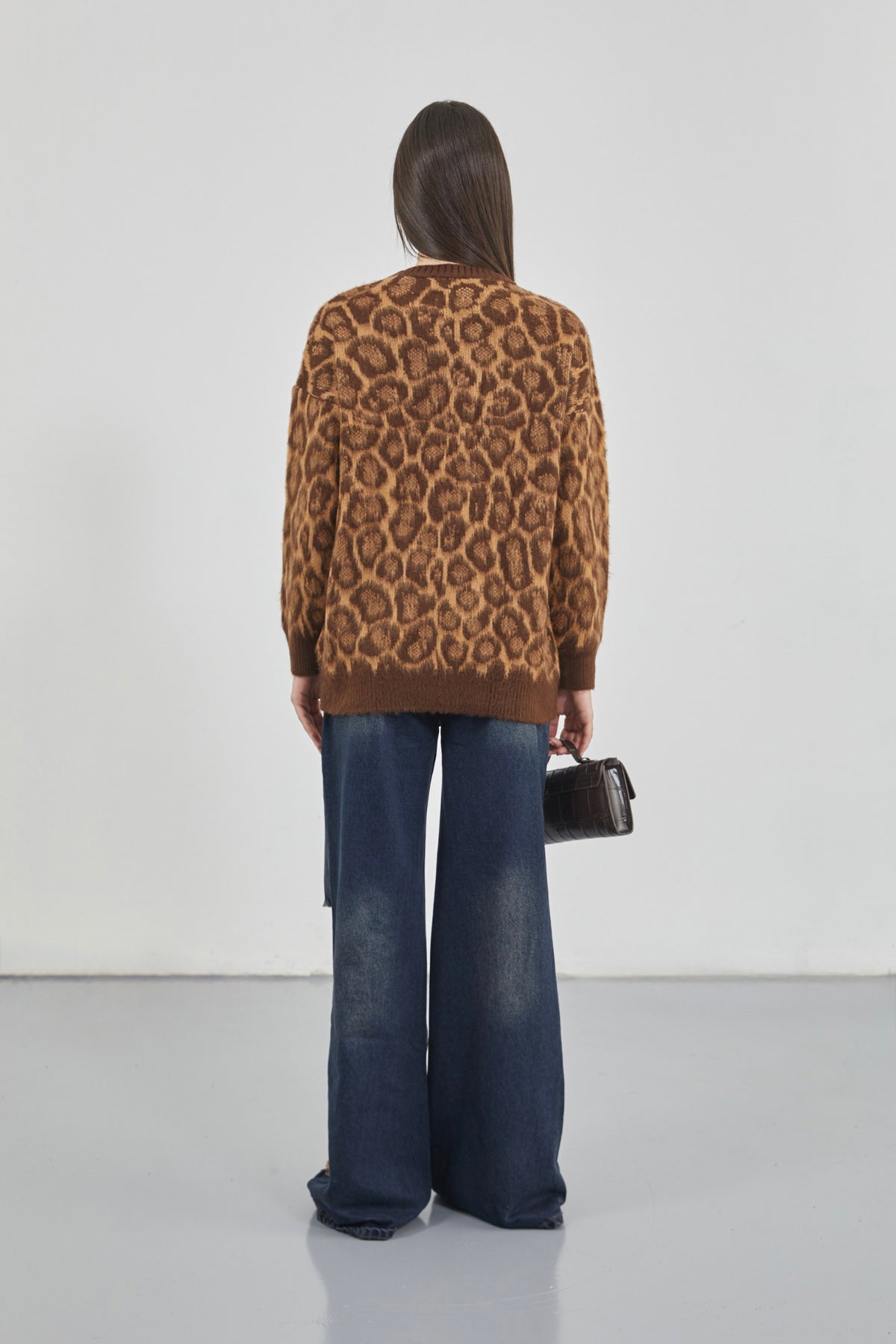 Leopard Patterned Brown Bearded Knitwear Sweater