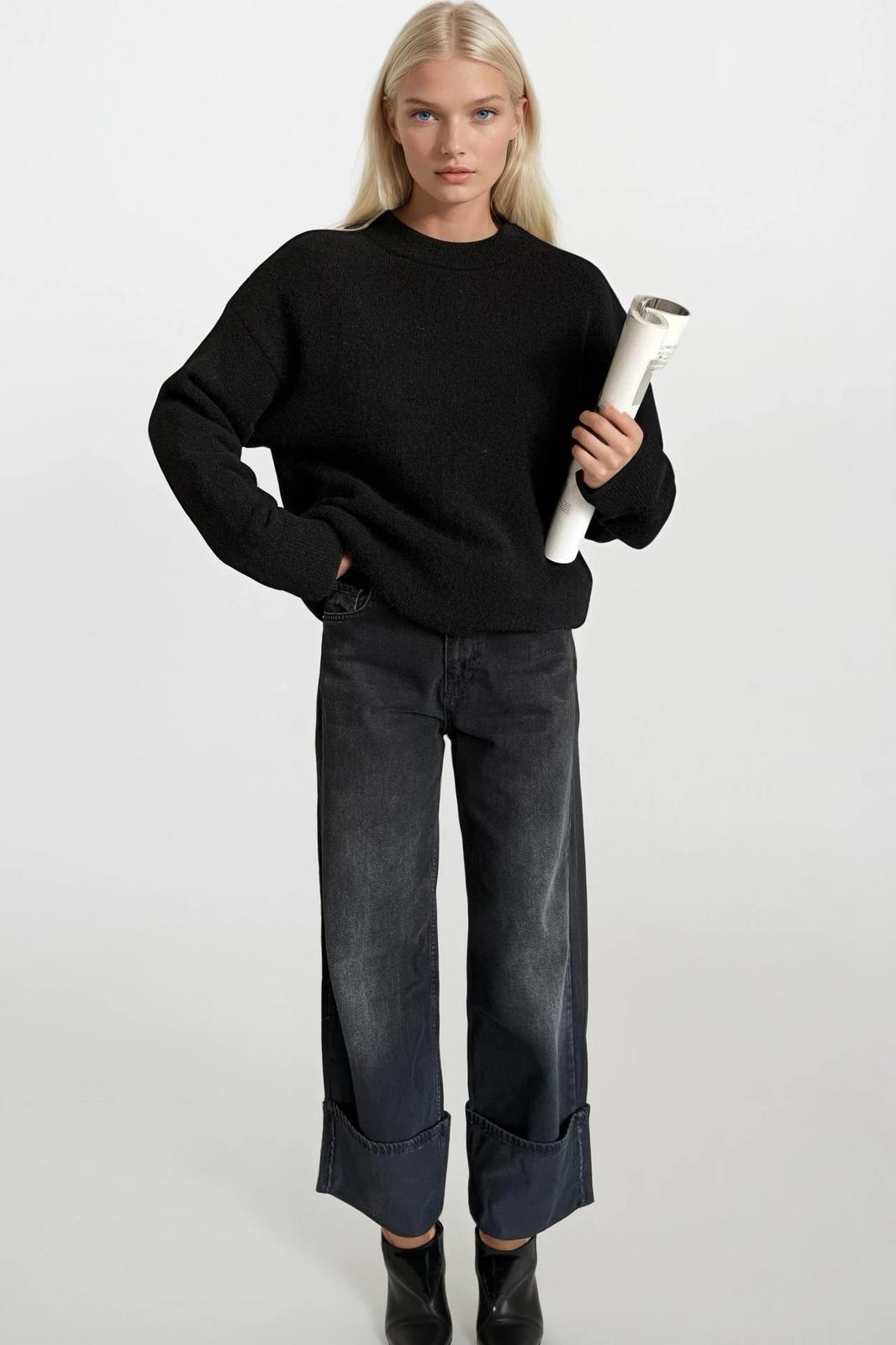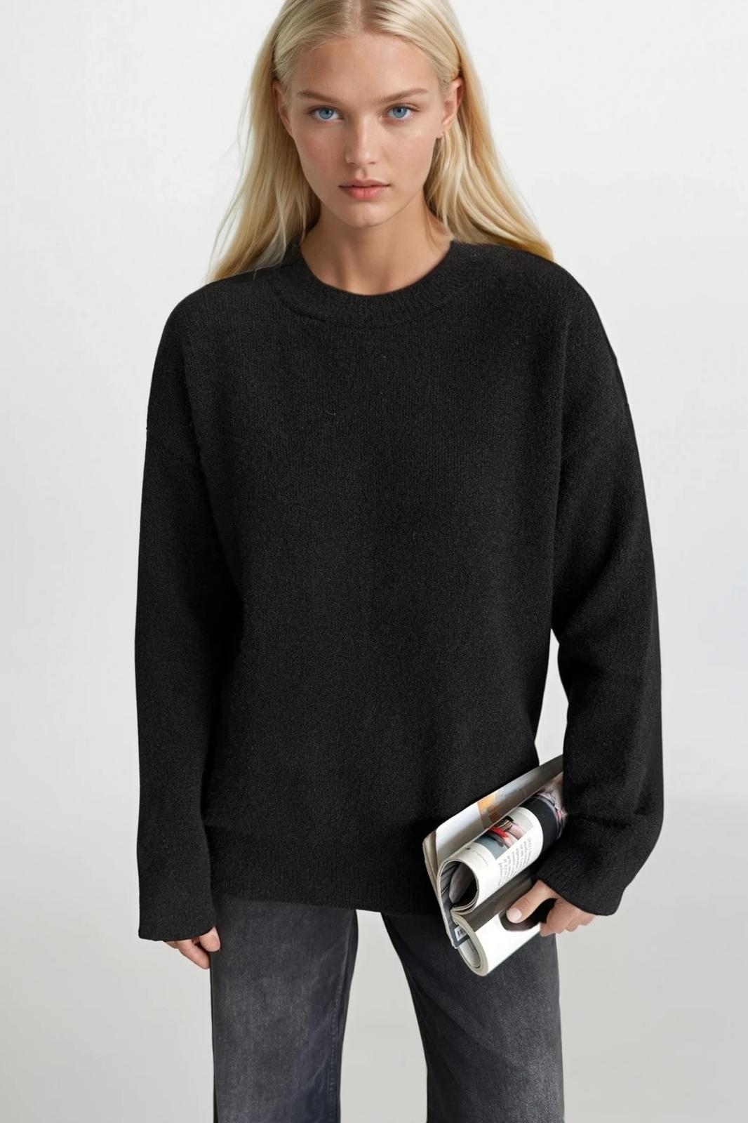 Bisiklet Yaka Basic Siyah Kazak