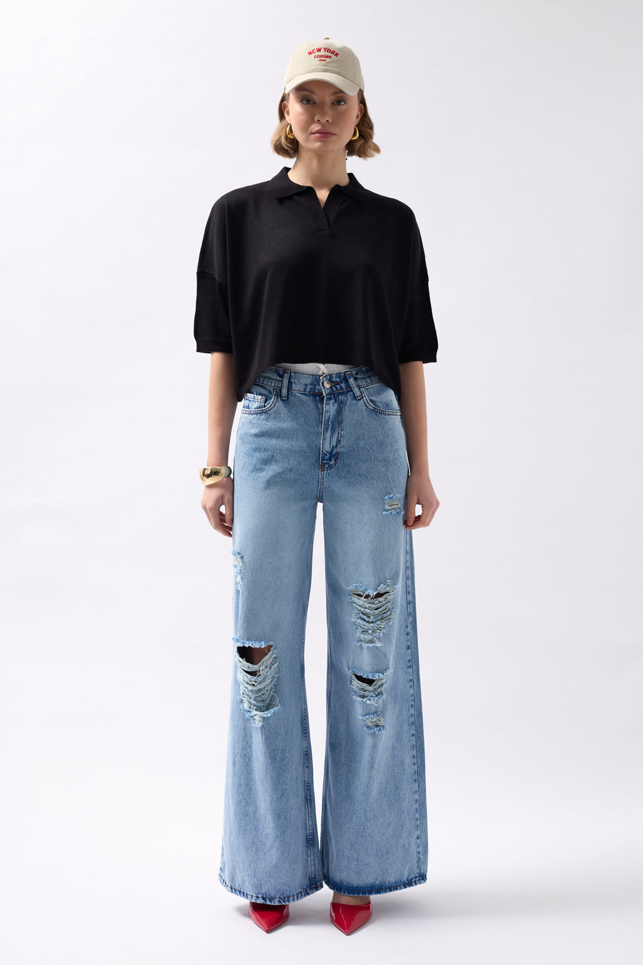 The Black women's blouse collection offers a rich selection that appeals to every style, from simple lines to bold details. From basic blouses to lacy styles, cropped blouses to patterned options, you'll find options to express your style in any setting! Update your wardrobe with modern touches with the new season's women's blouse models.