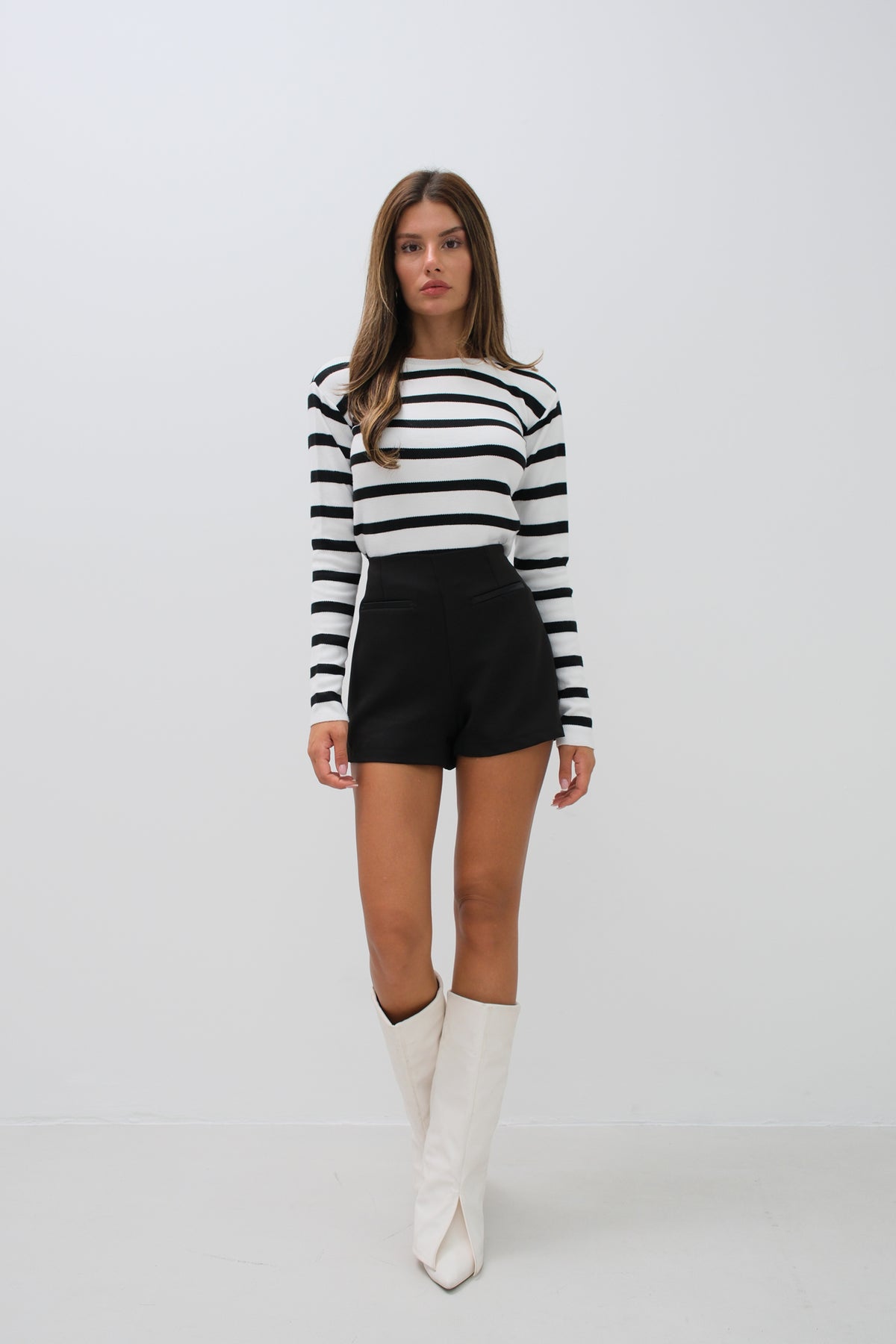 Horizontal Striped, Crew Neck, Long Sleeve, Body-Clinging, Knitted Blouse