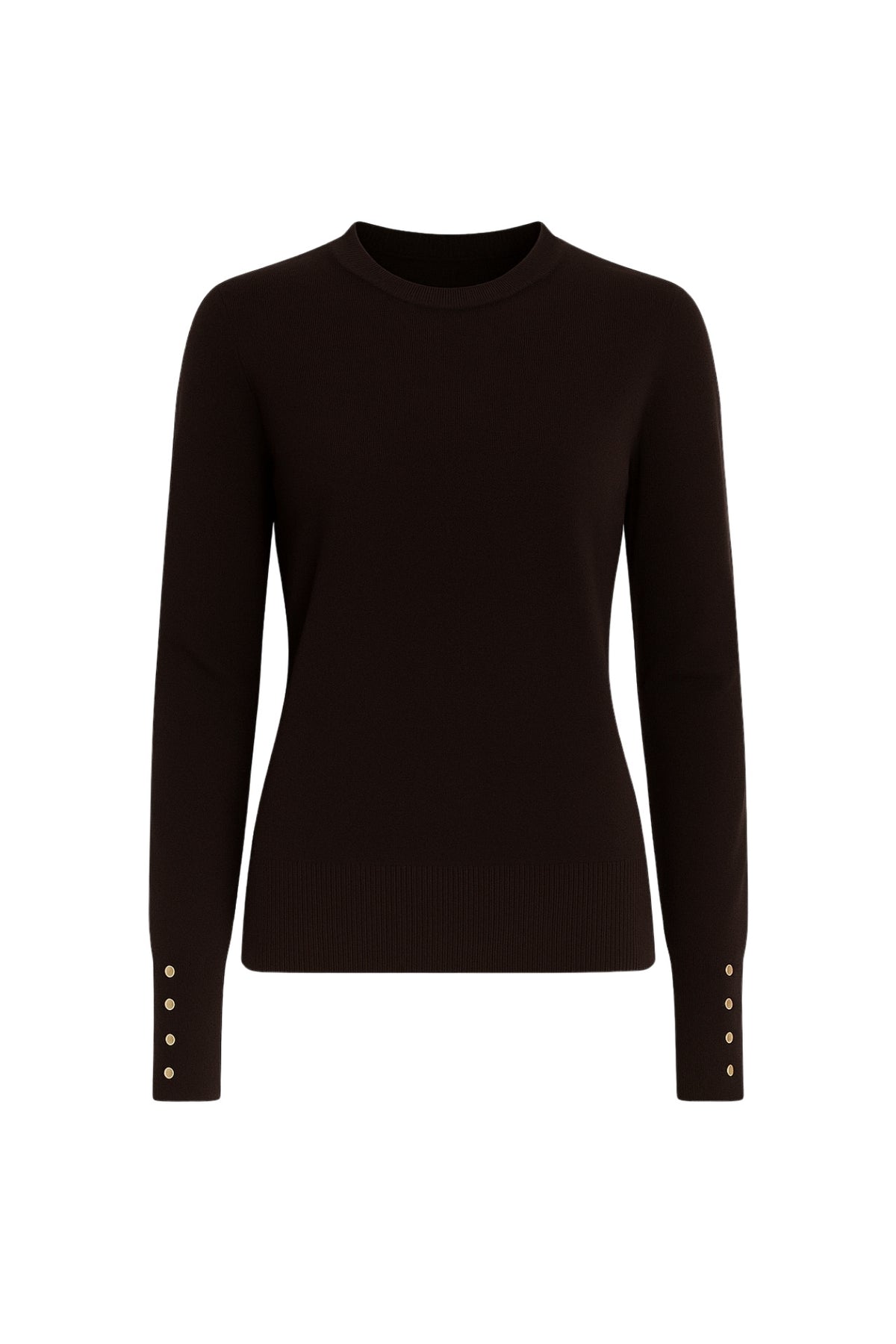 Düğme Detay Bisiklet Yaka Siyah Bluz