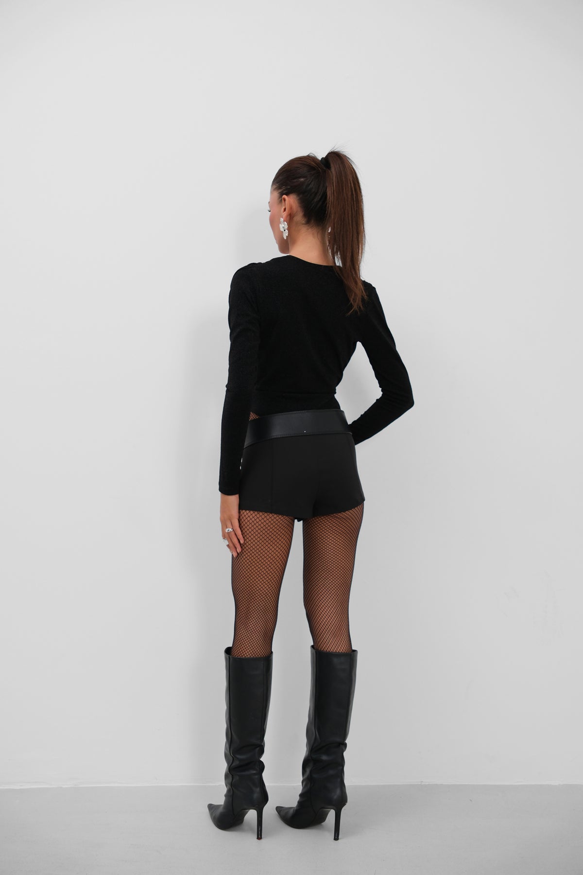 Bodysuit, Low-cut, Fashion, Glittery, Long Sleeve, V-Neck