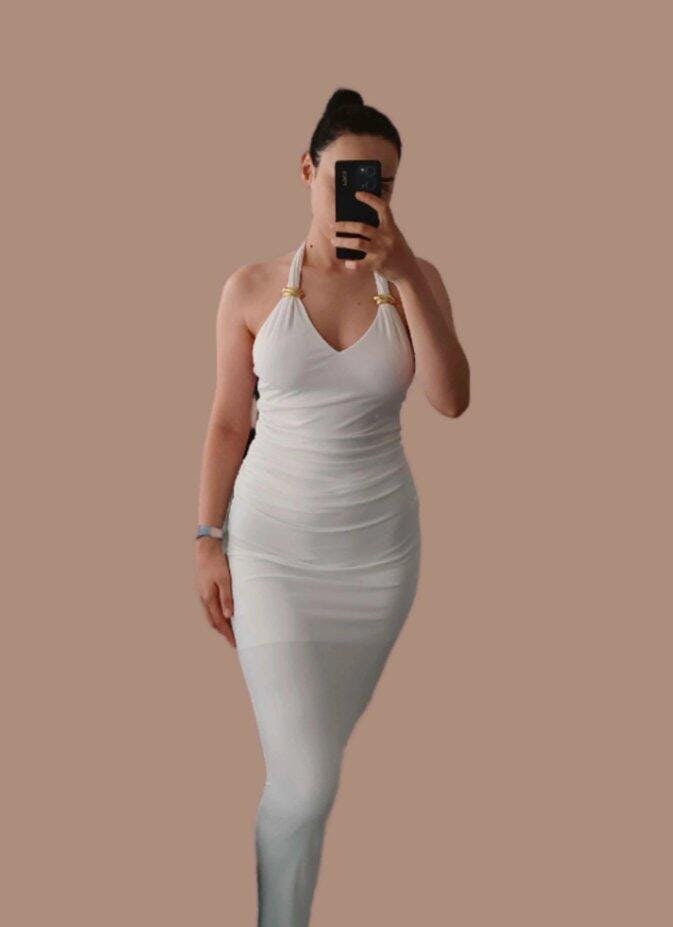 Adjustable Accessory Detailed, Half Lined, Neck Tie, Lycra and Flexible Fabric Long Dress